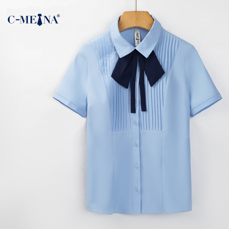 여름 신상 여성 정장 반팔 셔츠, 여성용 슬림핏 쉬폰 셔츠, 우아한 출퇴근룩, 슬림핏 패셔너블 셔츠스토어 가기