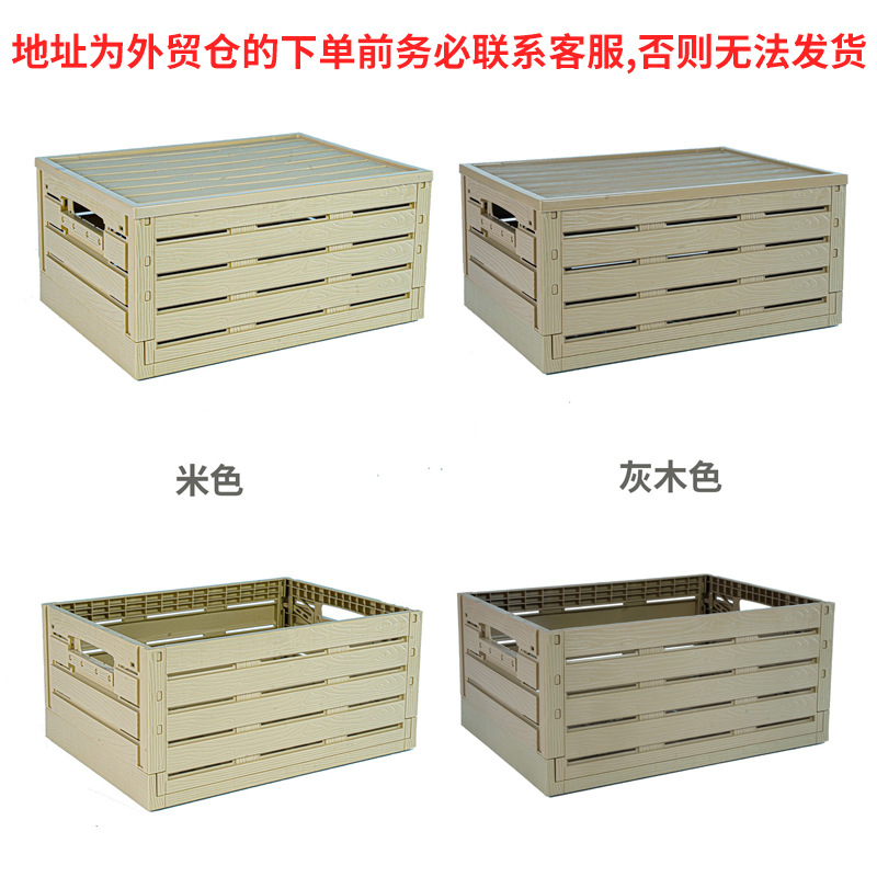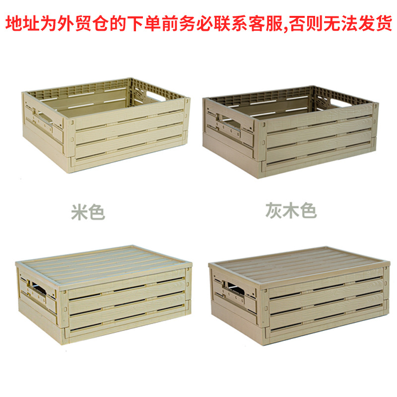 뚜껑이 달린 슈퍼마켓 모조 나뭇결 접이식 보관 바구니 대형 보관 상자 야외 가정용 잡다한 플라스틱 보관 상자