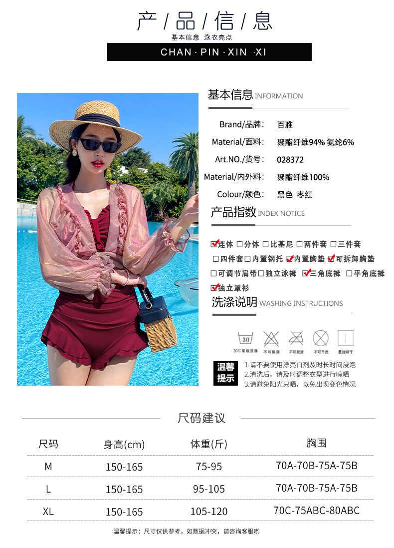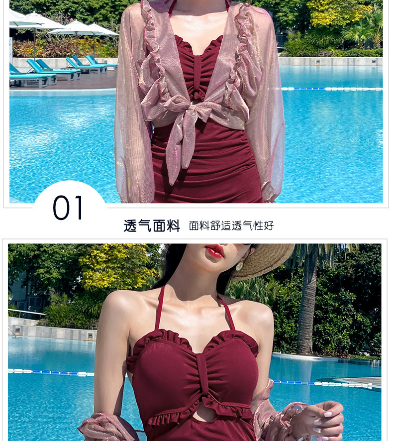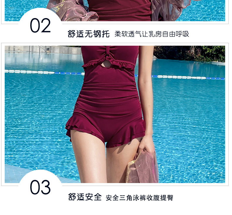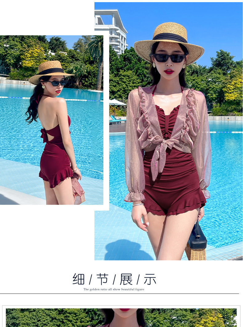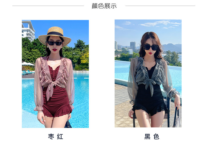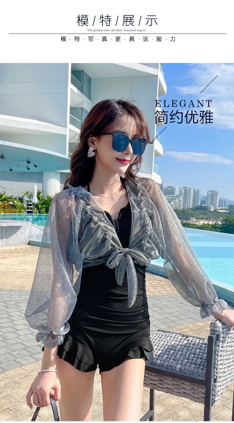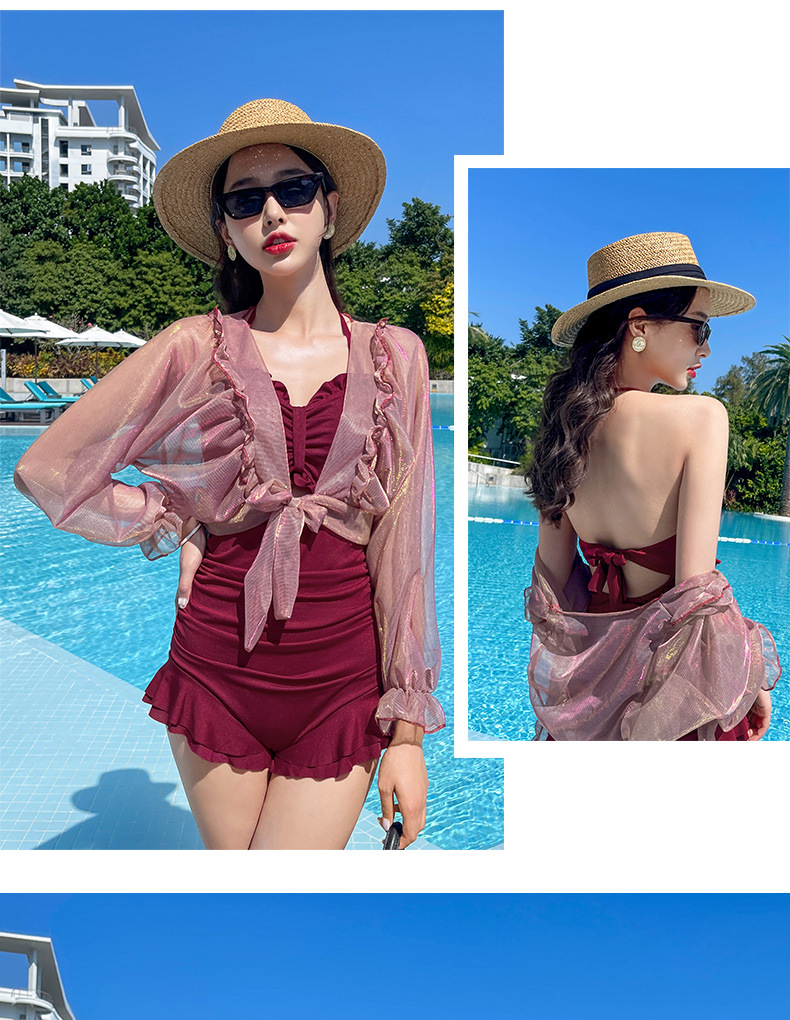 수영복 여성용 새로운 원피스 선크림 긴팔 블라우스 퓨어 인 스타일 섹시 스몰 체스트 푸시업 슬림핏 수영복스토어 가기