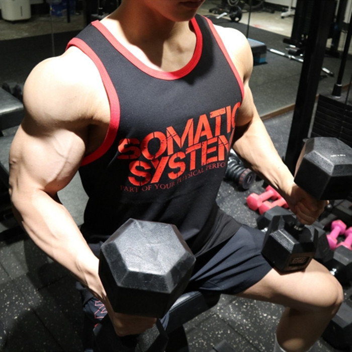 스포츠 조끼 남자의 슬림 훈련 피트니스 의류 보디 빌딩 패션 브랜드 농구 세트 통기성 라운드 넥 민소매 티셔츠 재고스토어 가기