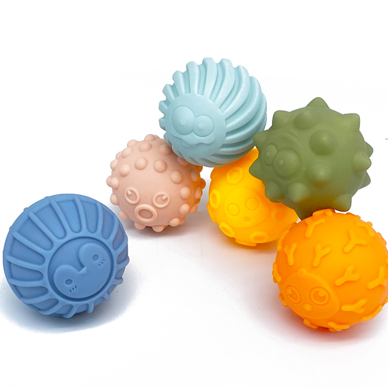 부드러운 고무 핸드 헬드 볼 아기 장난감 마사지 인식 핀치 터치 볼 세트 3-6 개월 된 아기 핸드 헬드 볼