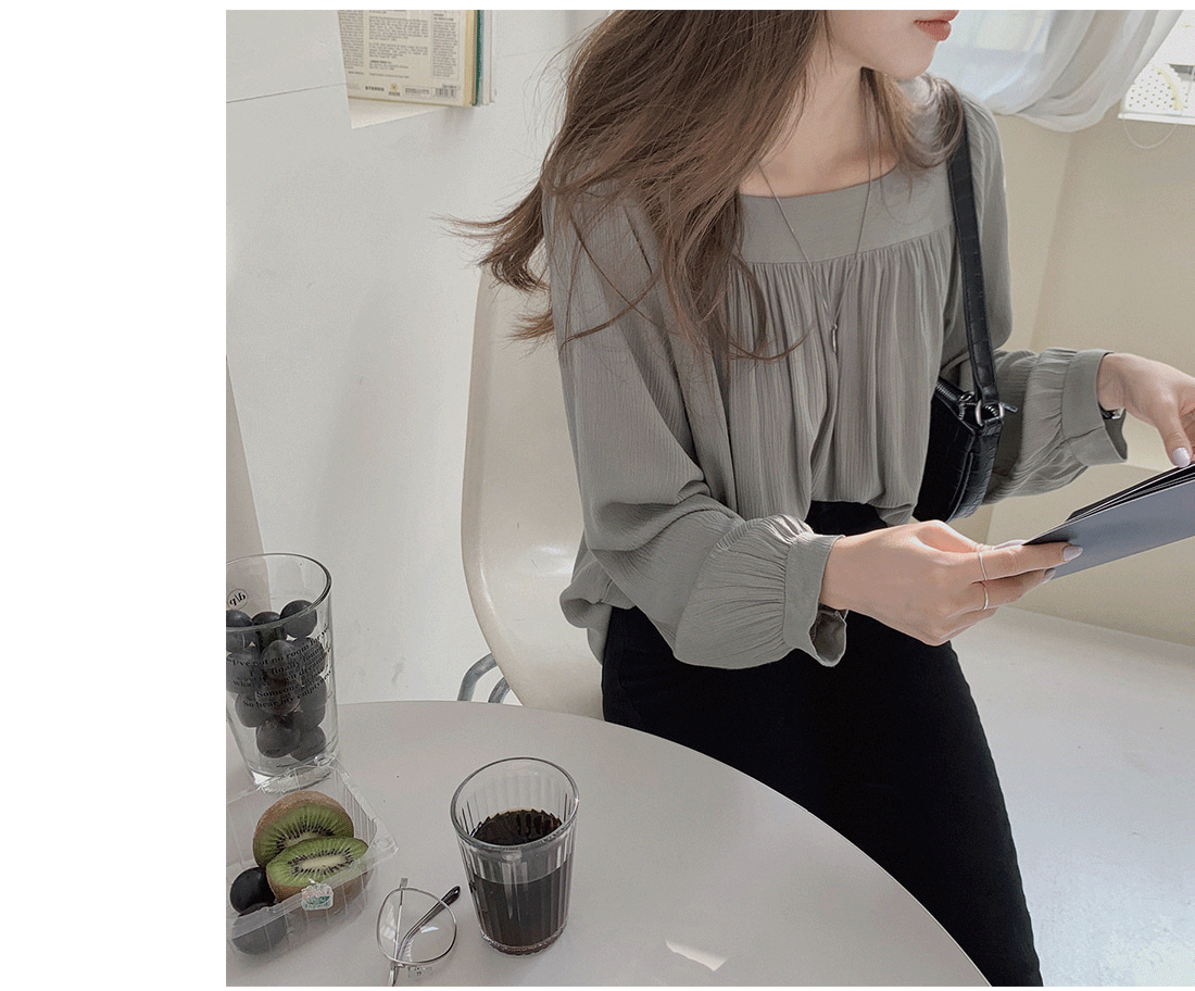 달콤하고 나이를 줄여주는 여성용 스퀘어넥 긴팔 셔츠, 2026년 신상, 우아한 프렌치 스타일, 쇄골이 드러나는 흰색 쉬폰 셔츠 탑스토어 가기