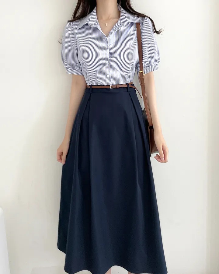 • 블루 짧은 소매 벨트