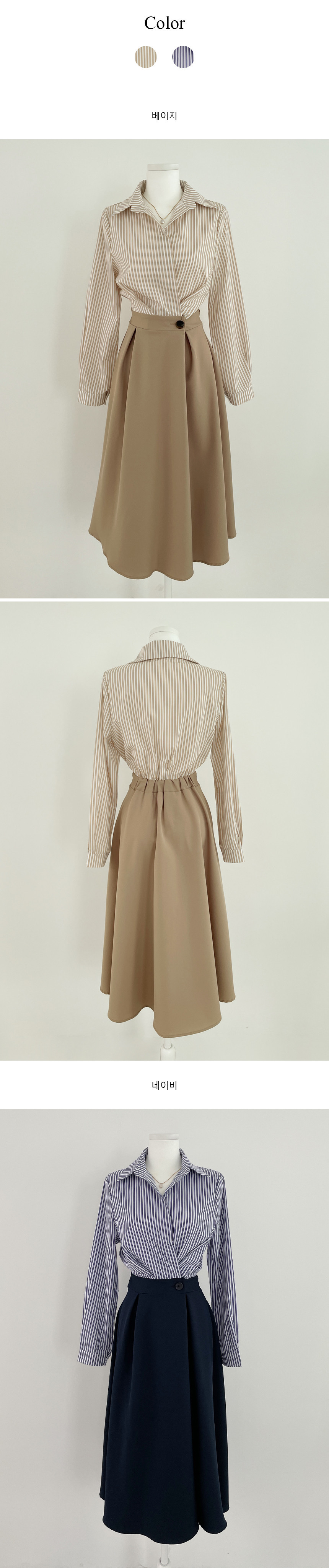 한국 인 우아하고 가벼운 성숙한 틈새 원버튼 디자인 센스 기질 폴로 칼라 패셔너블한 하이웨이스트 긴팔 드레스