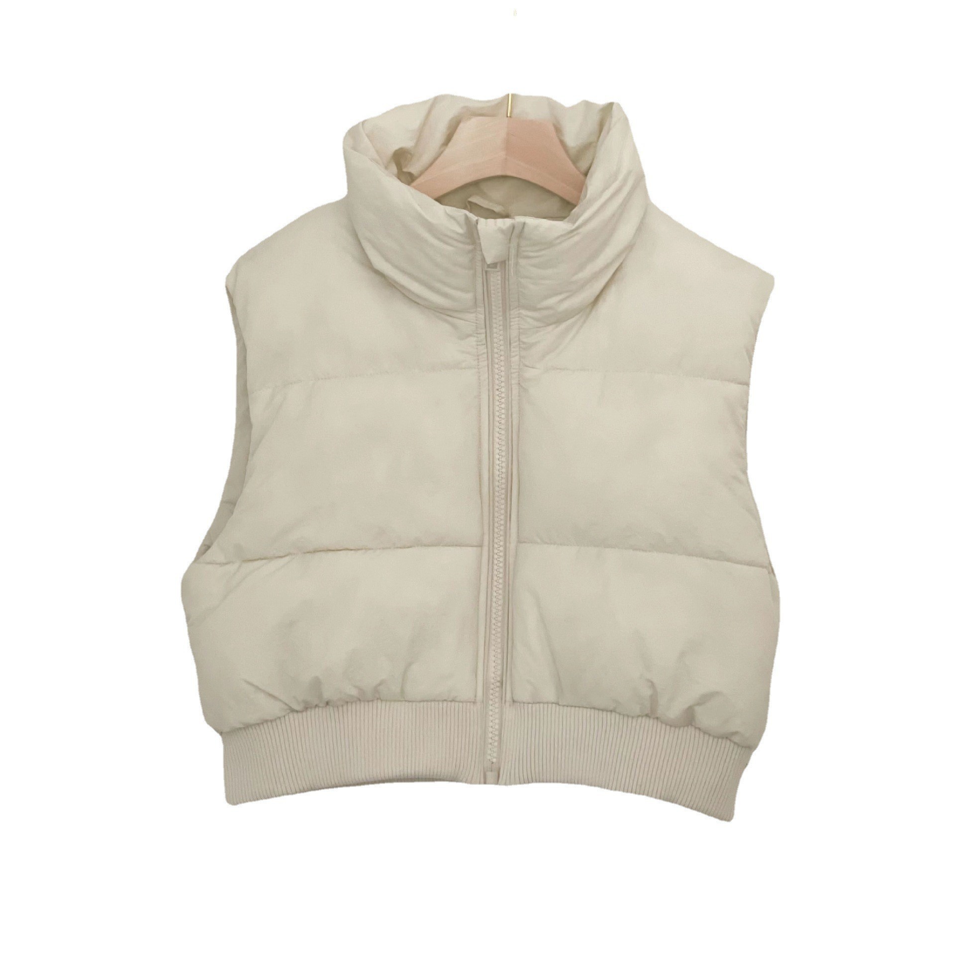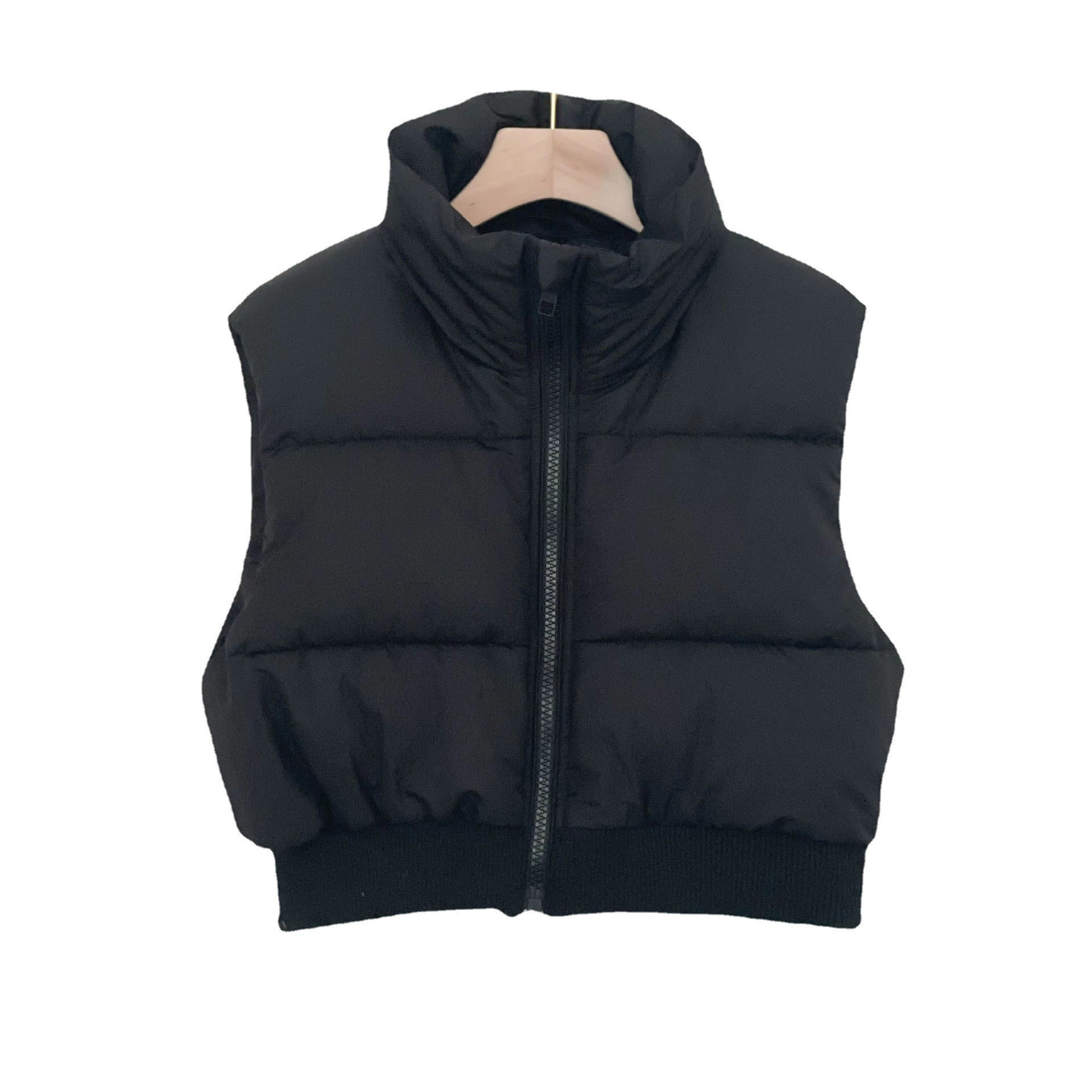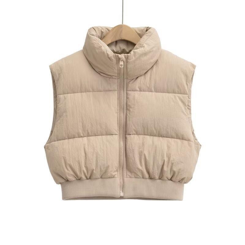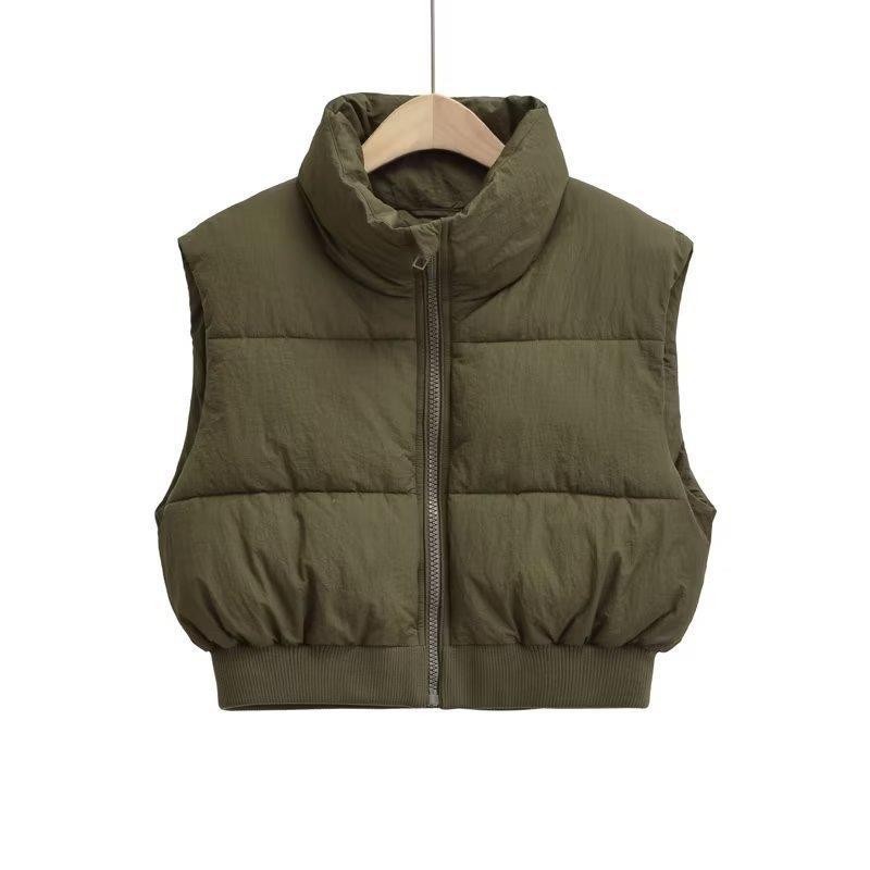 크로스 보더 도매 2022 겨울 유럽과 미국 스타일 여성 스탠드 칼라 밑단 갈비뼈 슬림 코튼 조끼 따뜻한 숙녀 조끼스토어 가기