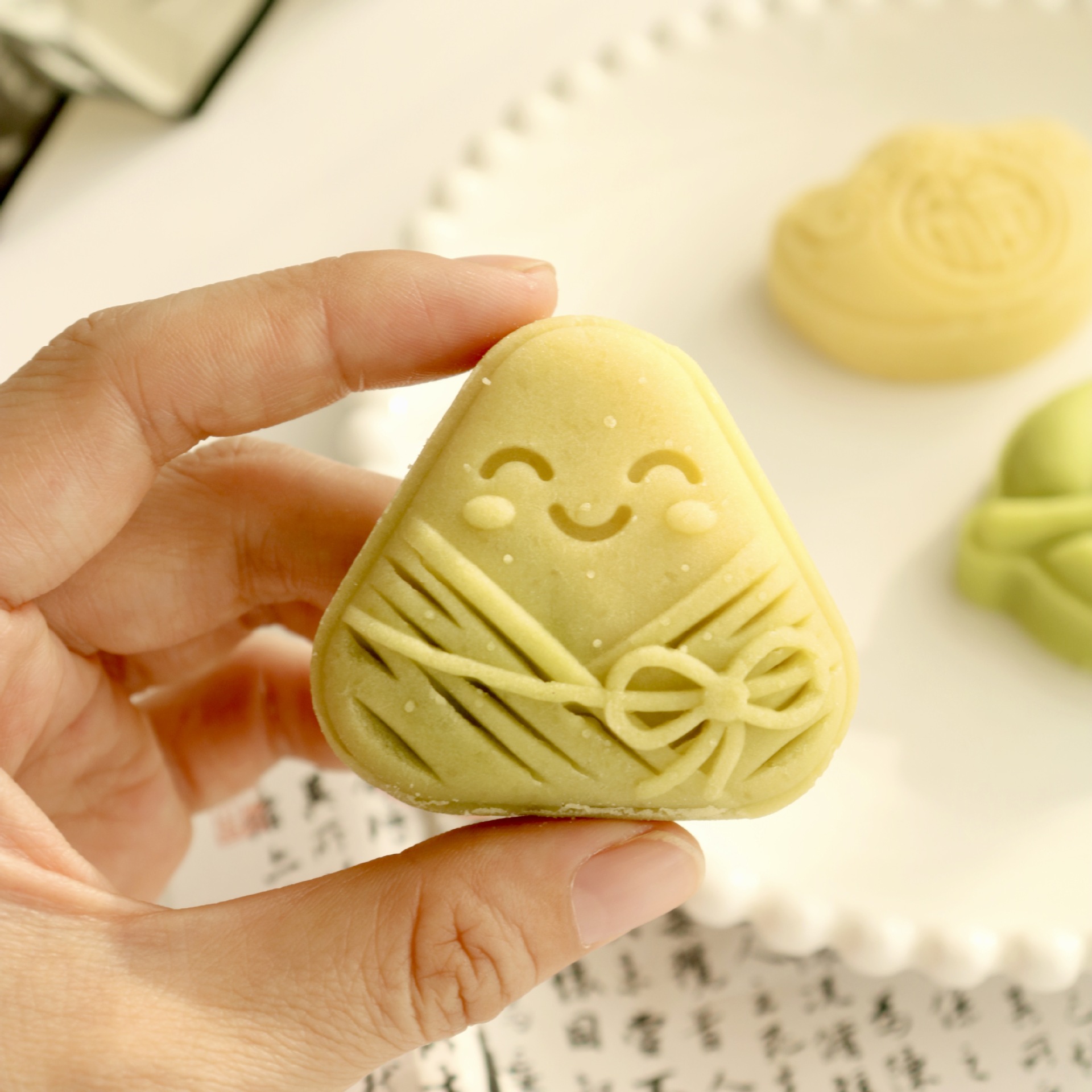 • 우아한 중국 스타일 - 말차 맛의 삼각 쌀만두