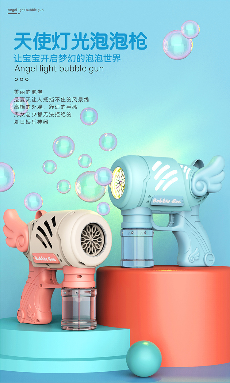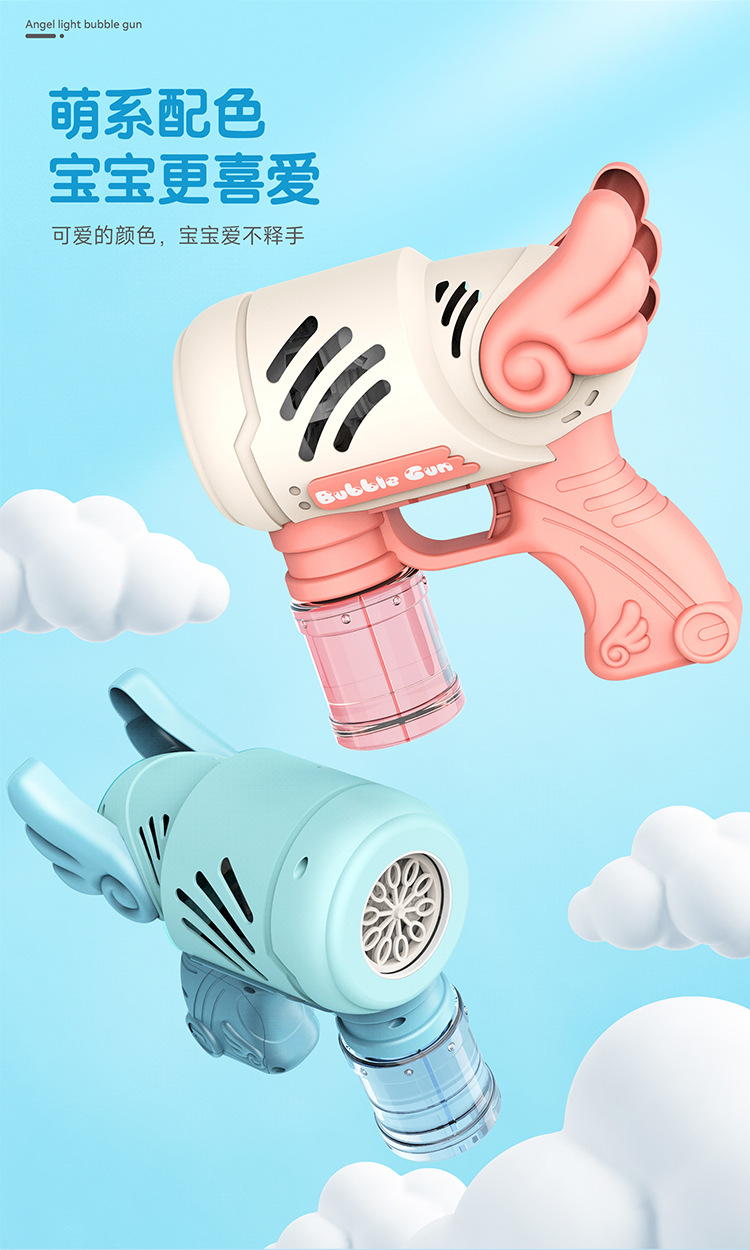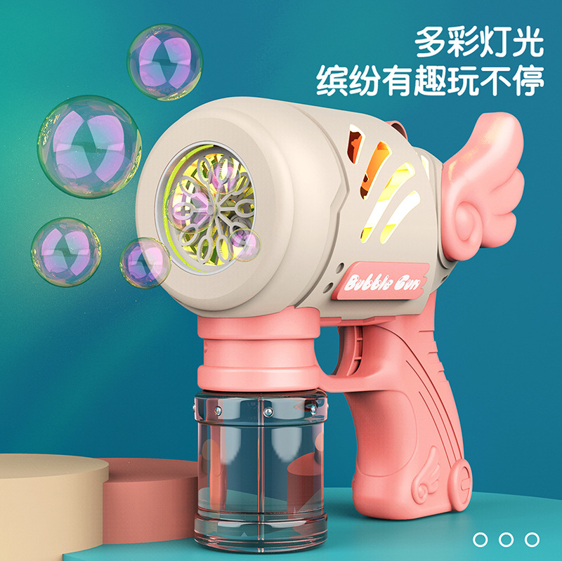 어린이 그물 레드 10 홀 엔젤 버블 건 전기 버블 불기 장난감 결혼식 개틀링 버블 머신 마구간 도매스토어 가기