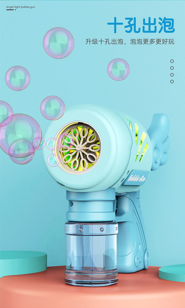 어린이 그물 레드 10 홀 엔젤 버블 건 전기 버블 불기 장난감 결혼식 개틀링 버블 머신 마구간 도매