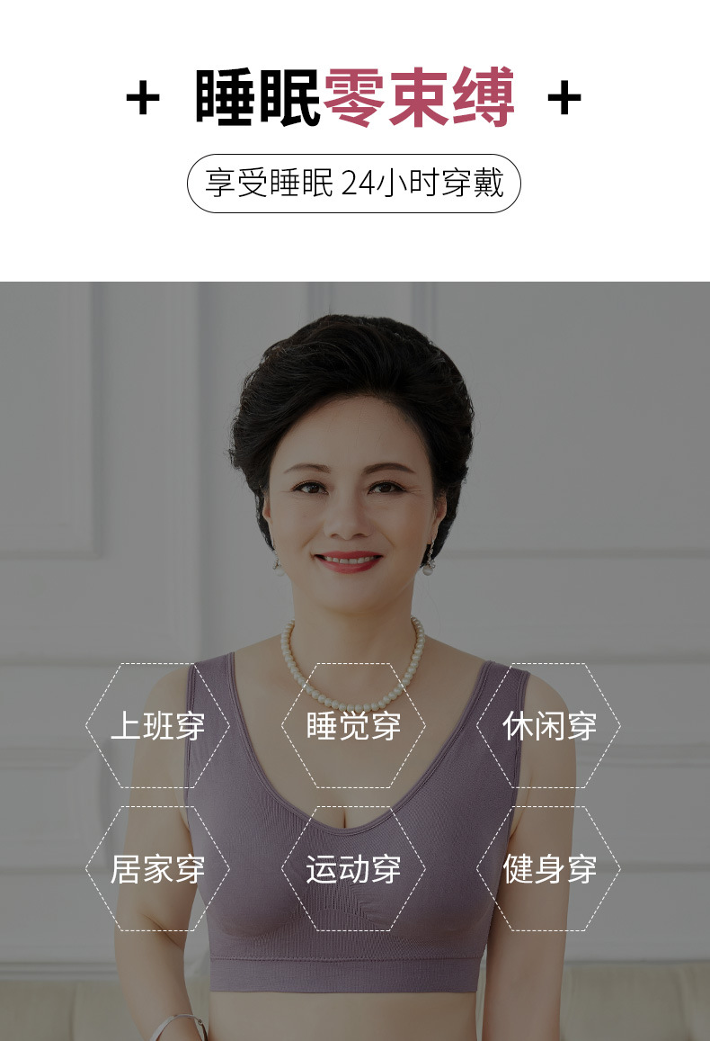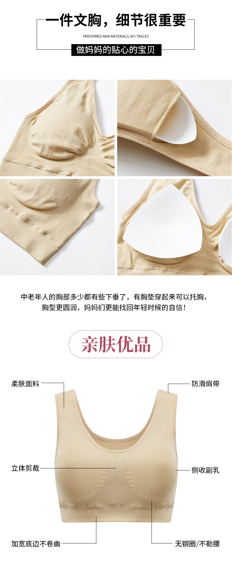 중년 어머니 속옷 스틸 링이없는 여성용 브래지어 얇은 중년 및 노인 50 세 스포츠 조끼 스타일의 아름다운 등 브래지어스토어 가기