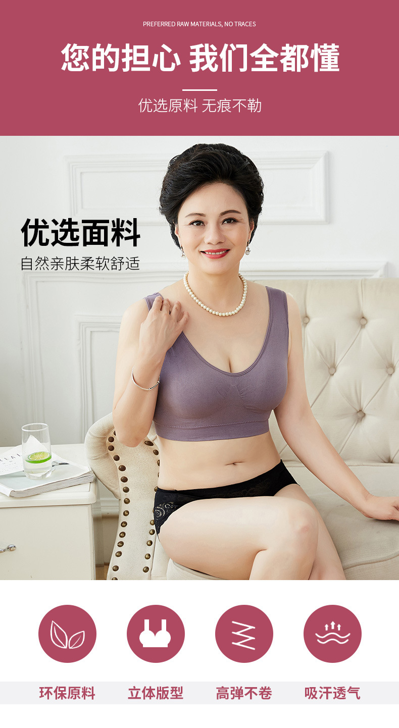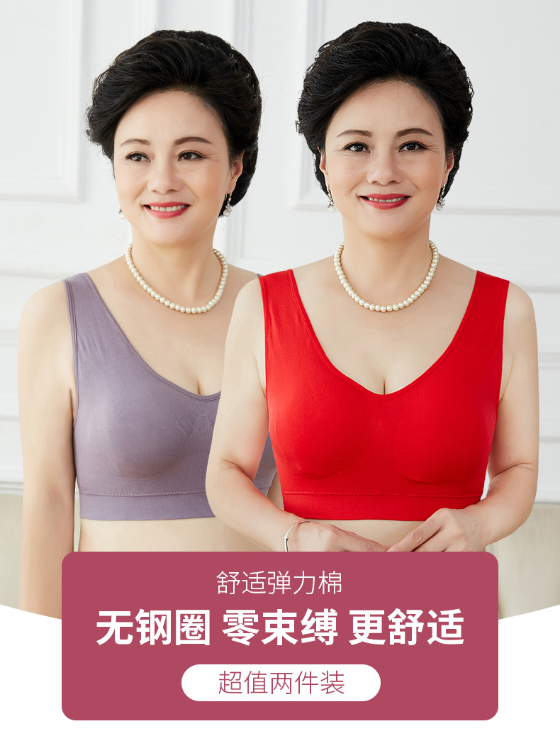 중년 어머니 속옷 스틸 링이없는 여성용 브래지어 얇은 중년 및 노인 50 세 스포츠 조끼 스타일의 아름다운 등 브래지어