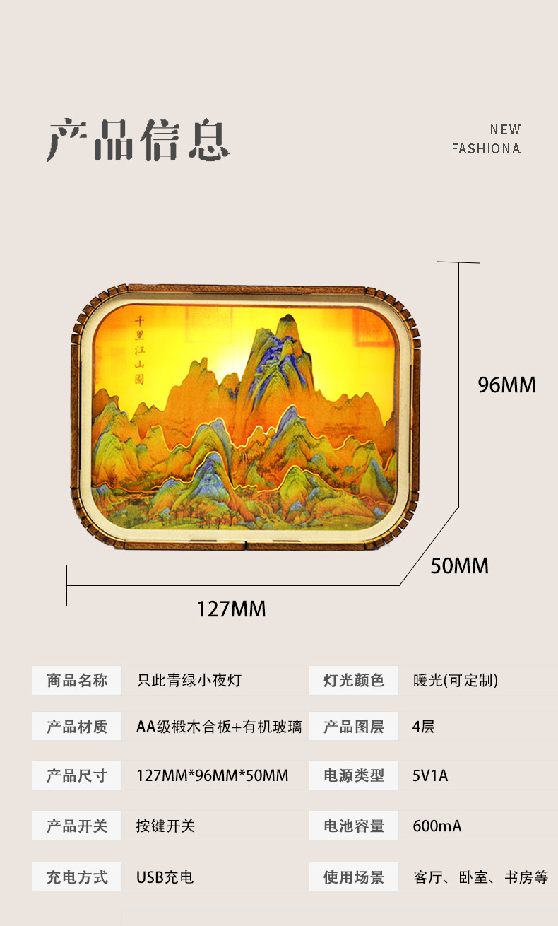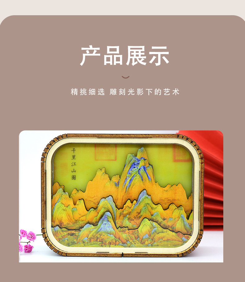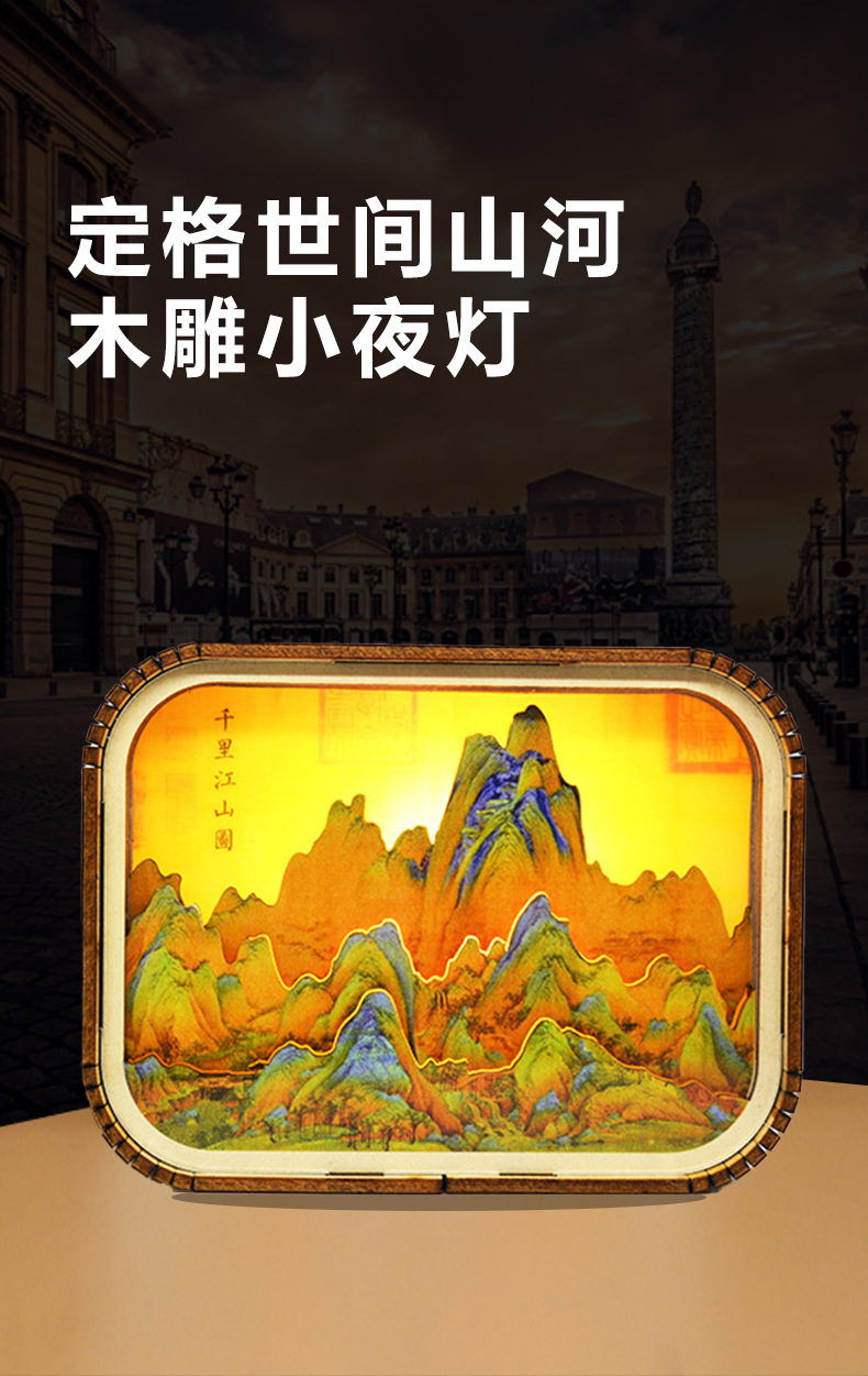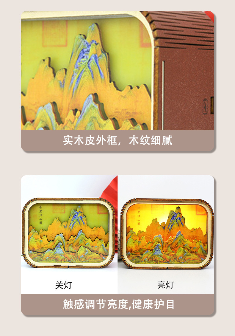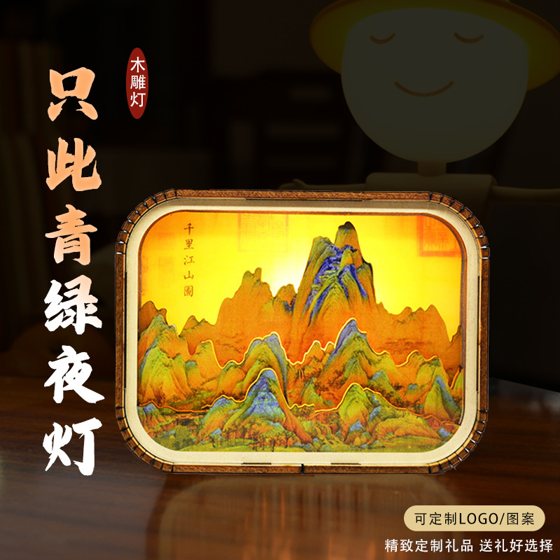 Qianli Jiangshan 그림 나무 그린 야간 조명 중국 고대 그림 파생 창조적 인 선물 침실 분위기 테이블 램프스토어 가기