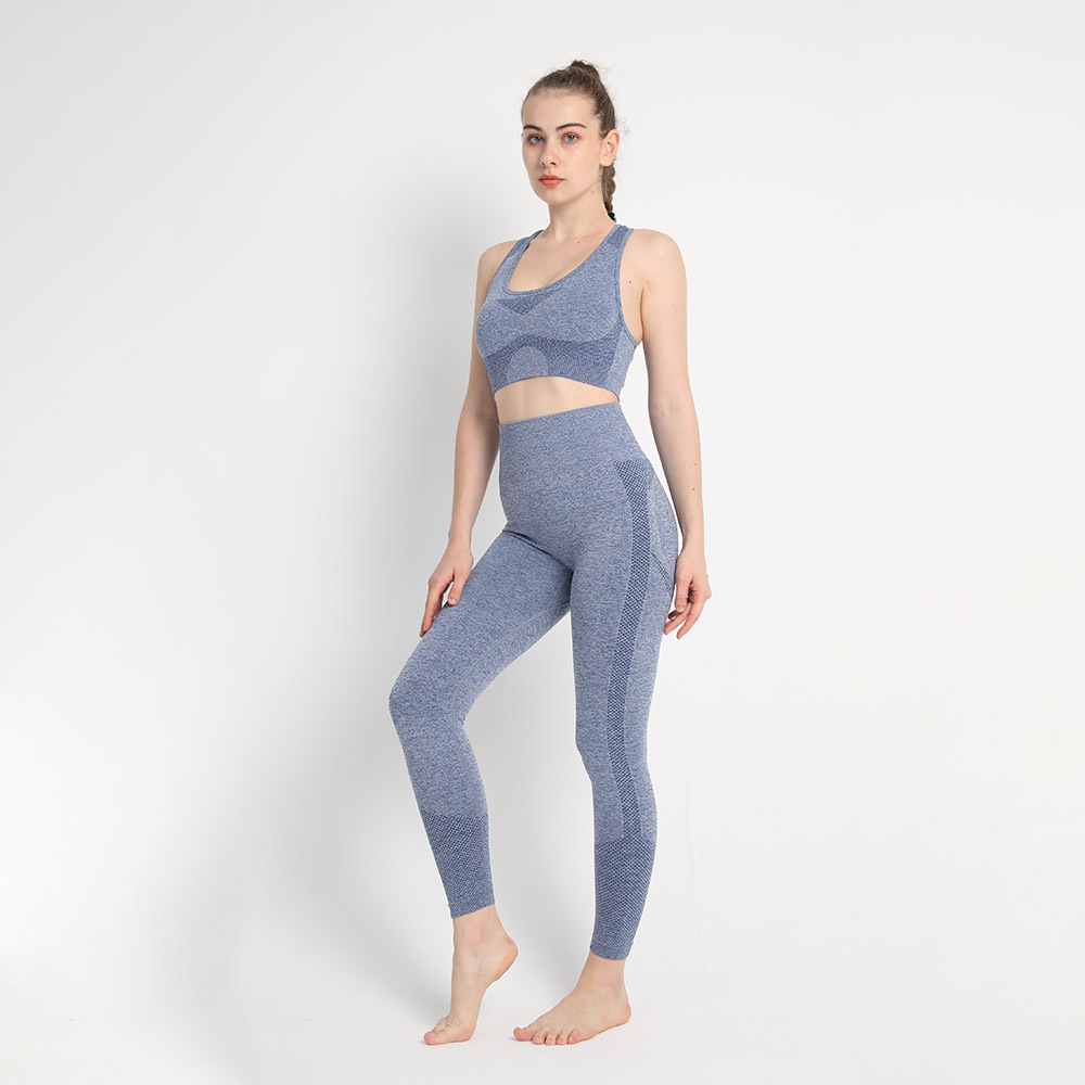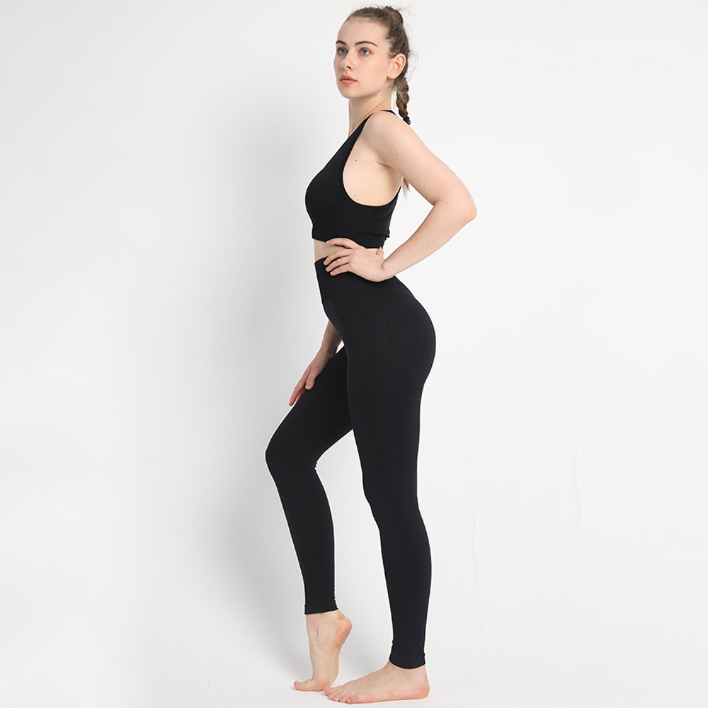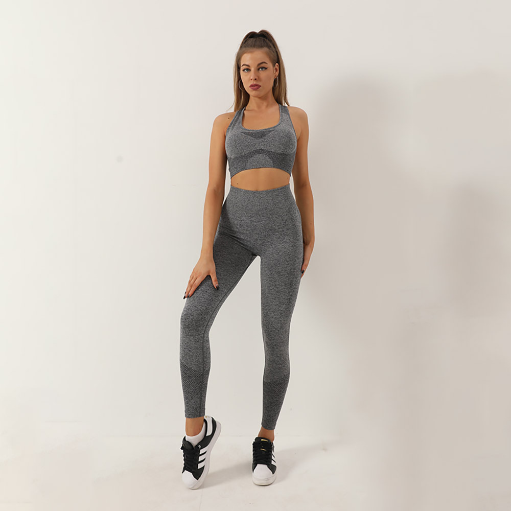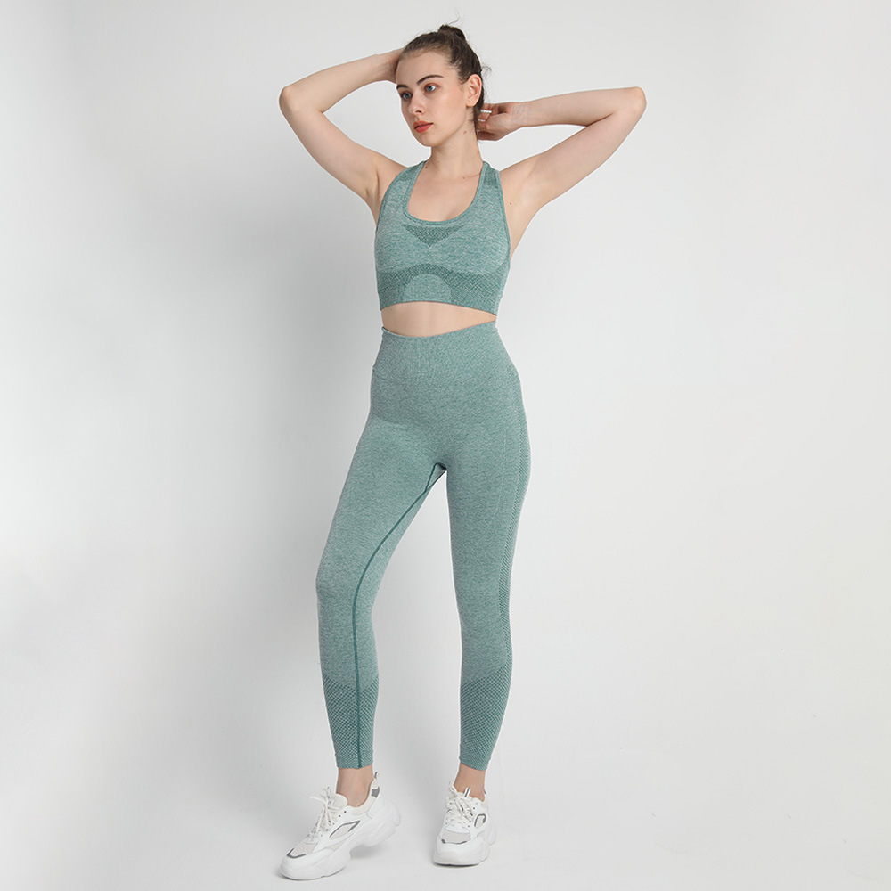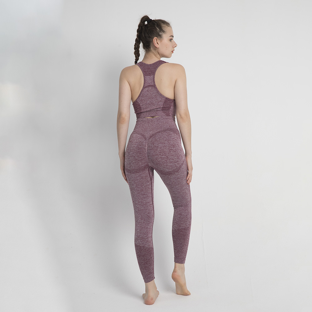 유럽 크기 심리스 투피스 복숭아 엉덩이 바지 I 자형 브래지어 조끼 스포츠 세트 여성의 피트니스 요가 의류