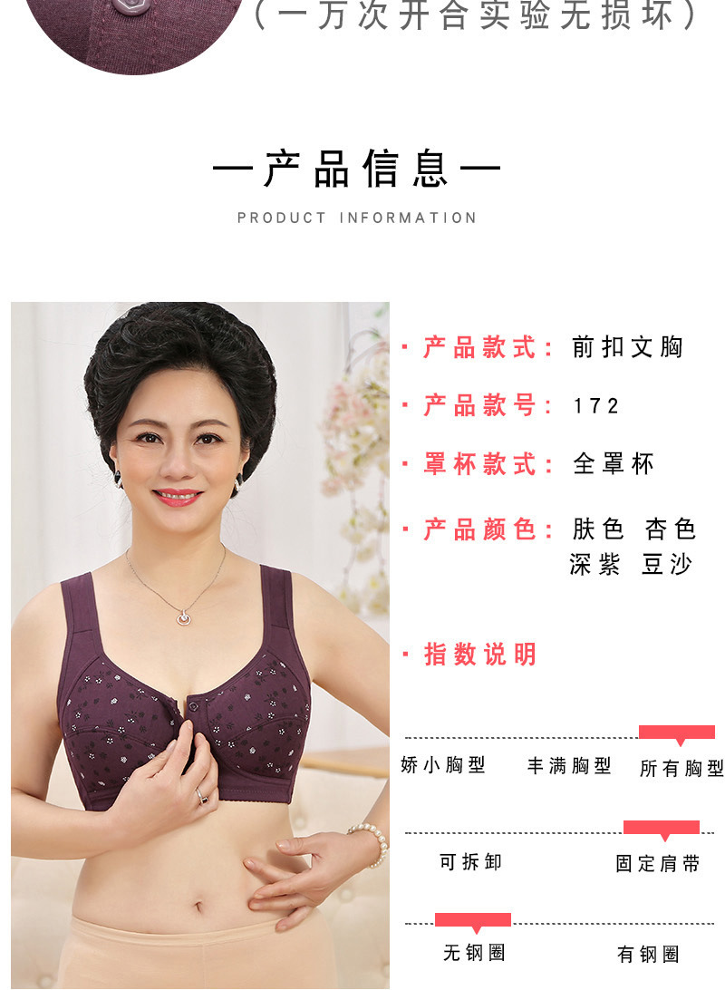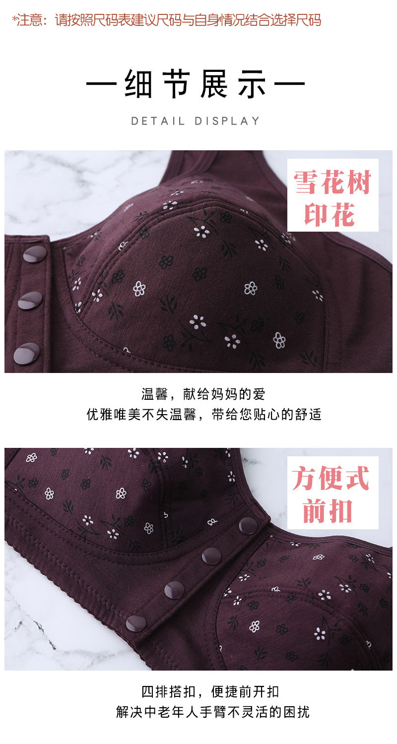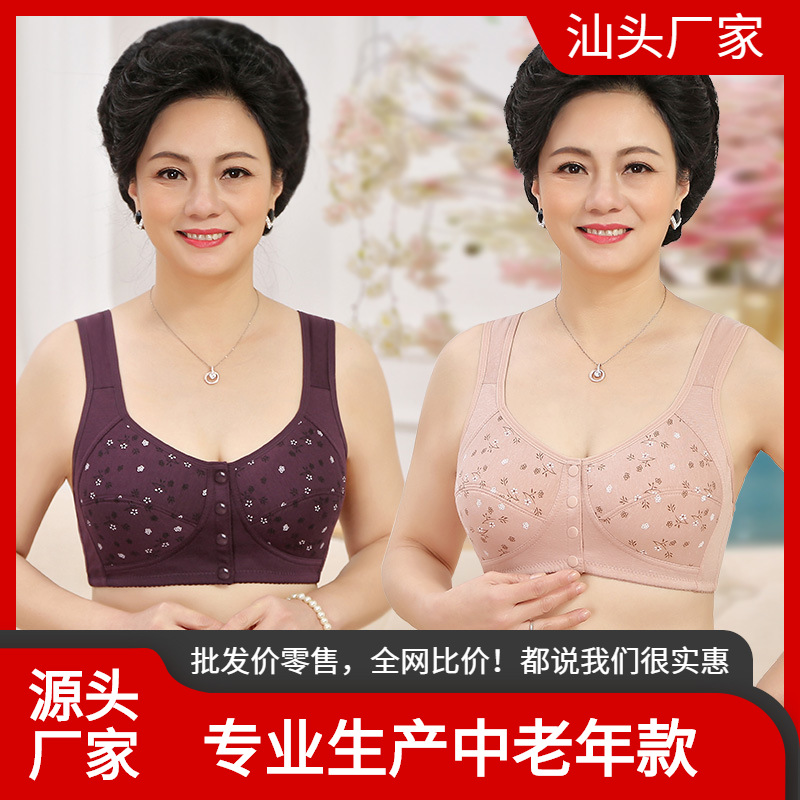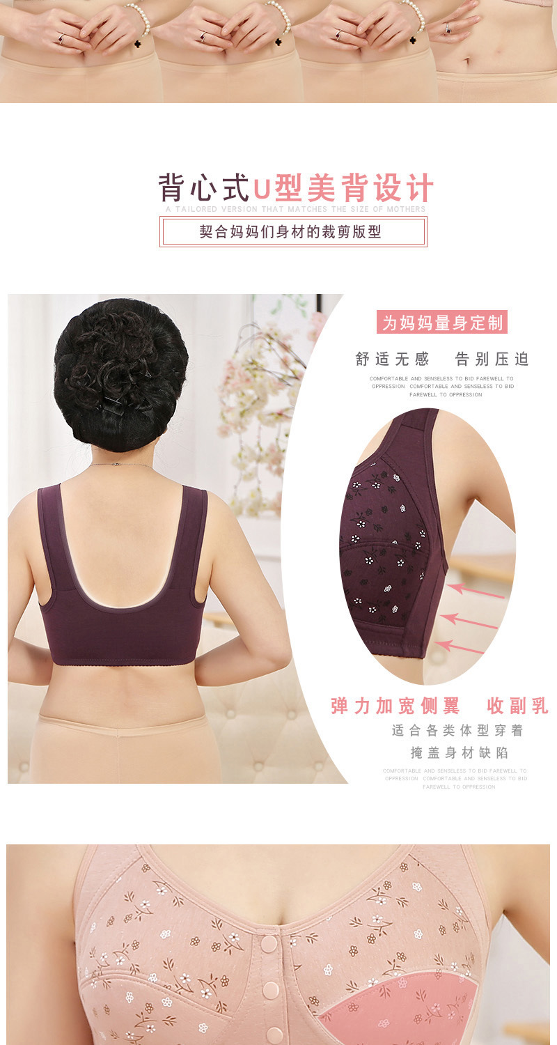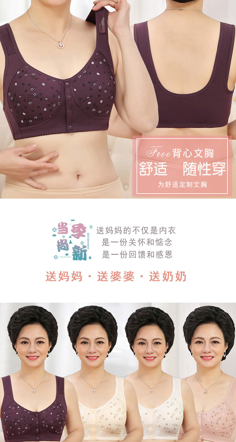 엄마의 속옷 브라 중년 여성의 노인 여성의 조끼 스타일 앞 버클 플러스 사이즈 50 세 무테 순면 브라스토어 가기