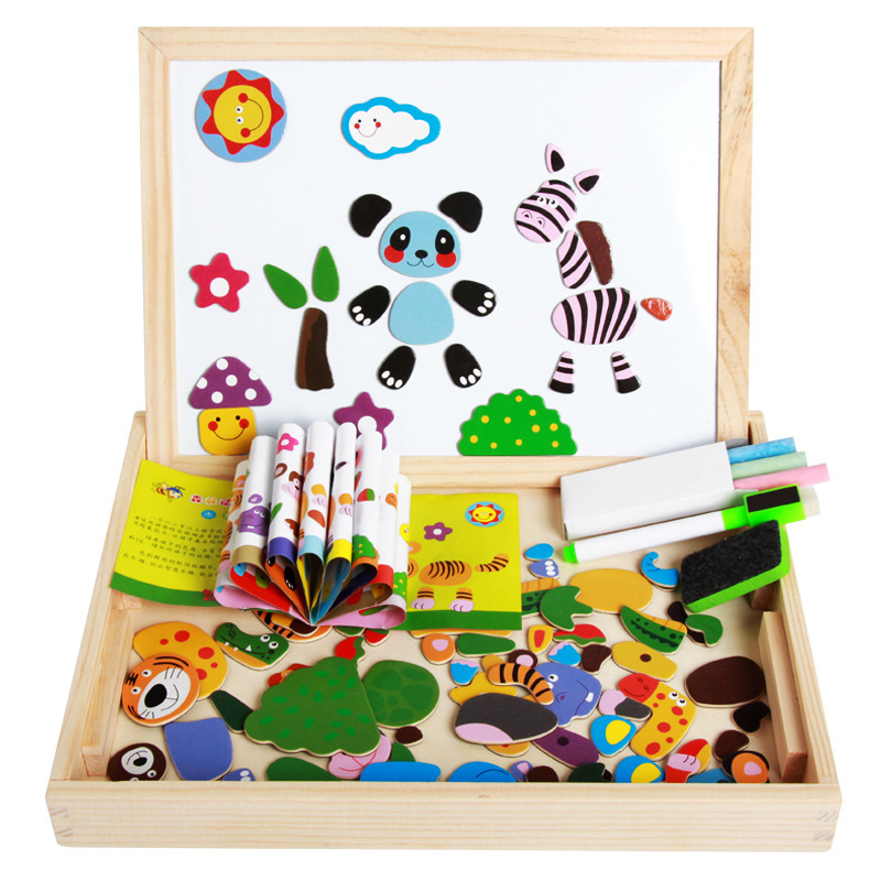 숲 다기능 자기 동물 퍼즐 나무 양면 드로잉 보드 학습 상자 나무 입체 빌딩 블록 퍼즐