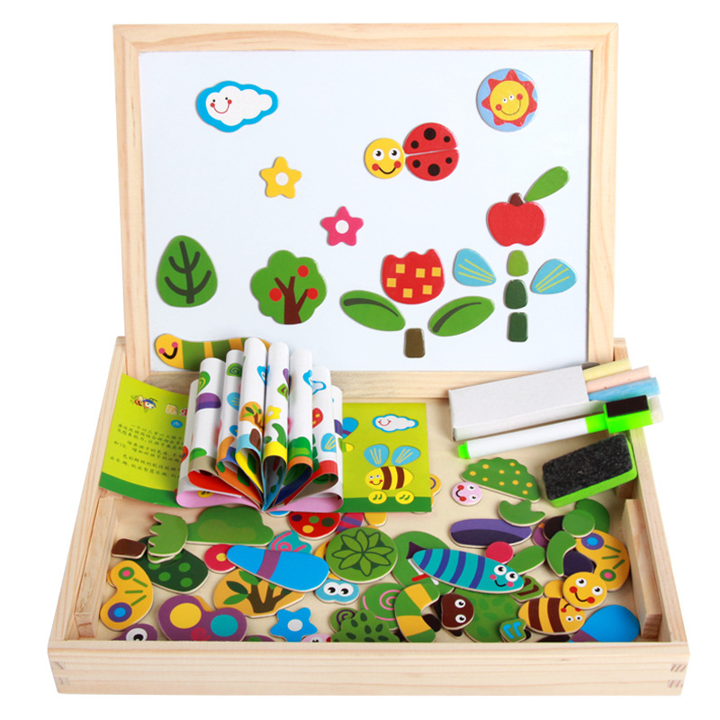 숲 다기능 자기 동물 퍼즐 나무 양면 드로잉 보드 학습 상자 나무 입체 빌딩 블록 퍼즐스토어 가기