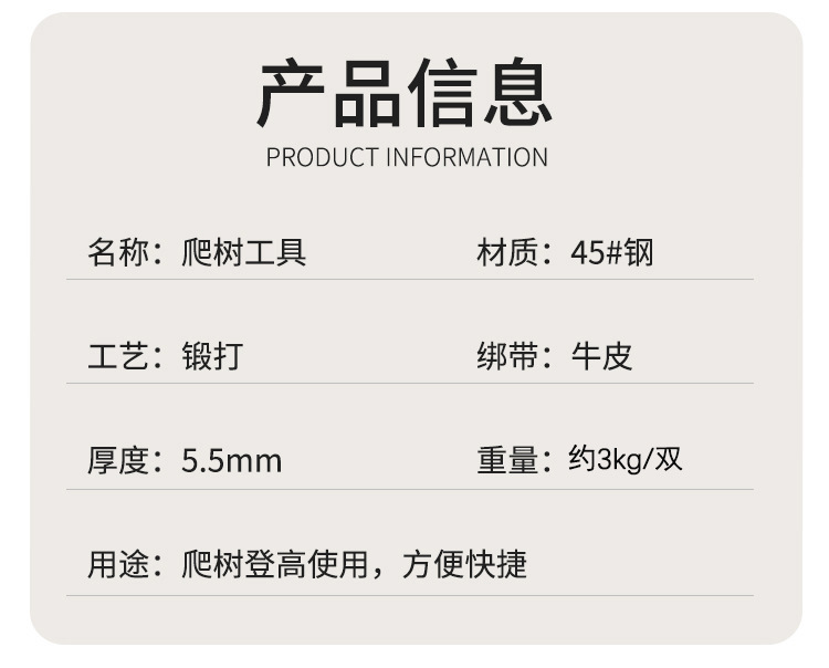 단조 조정 가능한 직립 나무 등반 도구 전체 대형 목발 나무 따기 발 넥타이 잡기 말벌 철 신발 발 버클