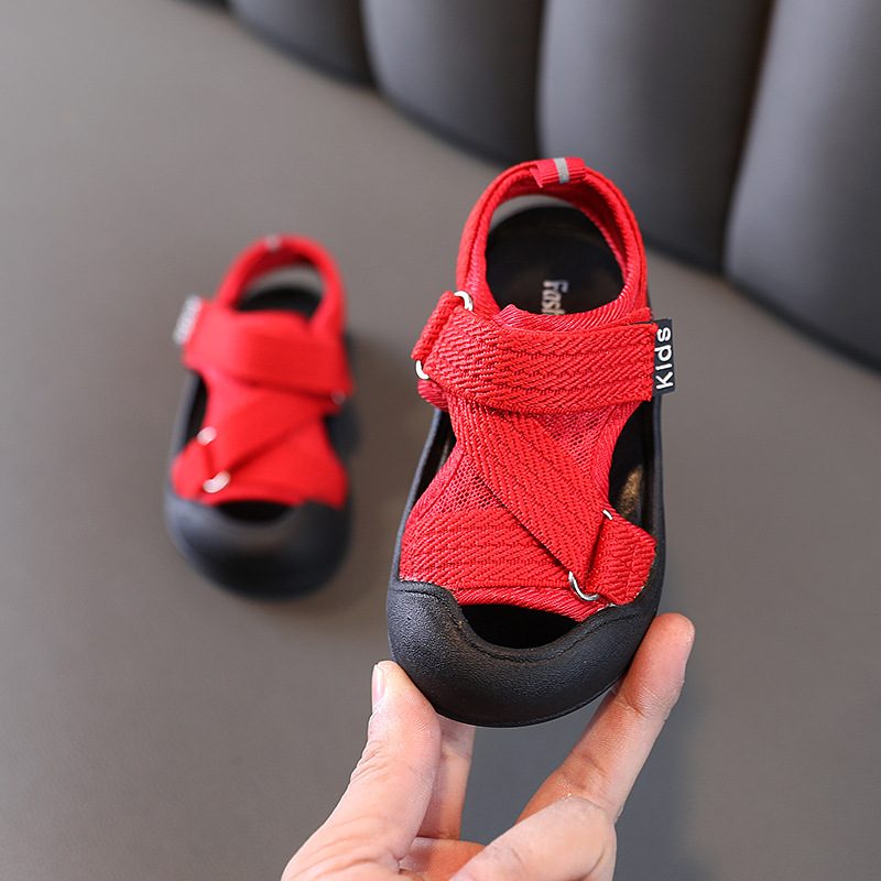 어린이 샌들 여름 1-2-3 세 아기 부드러운 밑창 신발 소년 어린이 해변 신발 닫힌 발가락 아기 소녀 통기성 메쉬 신발