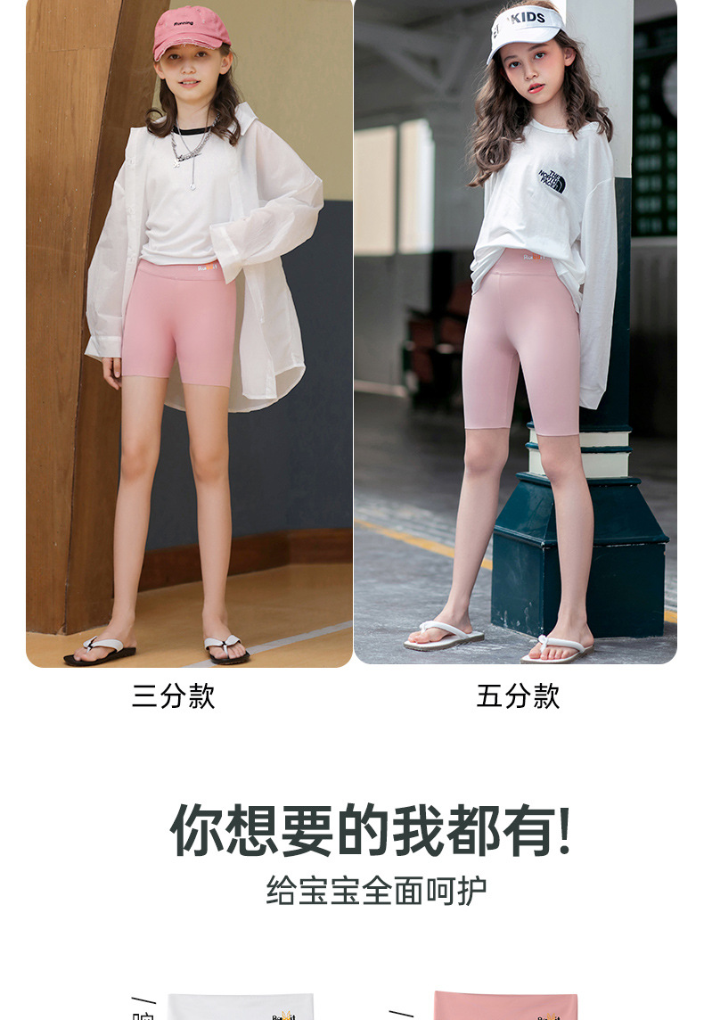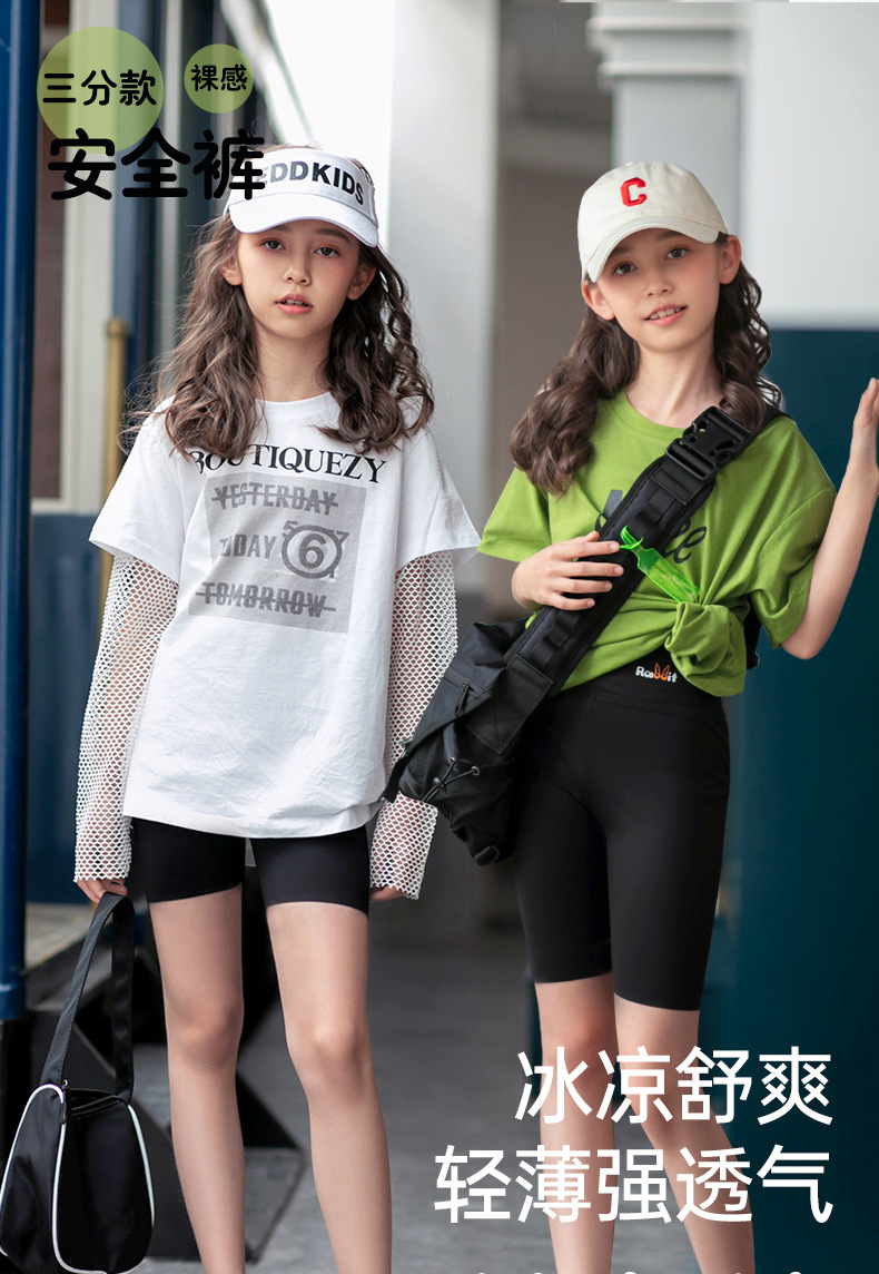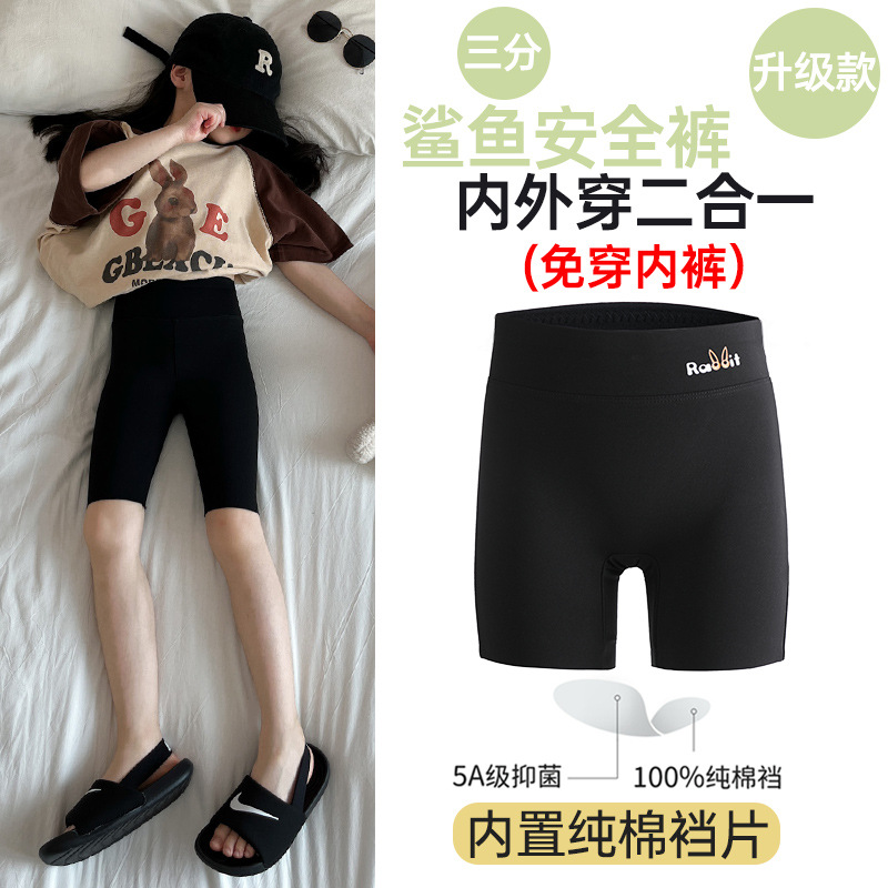 여아 상어 바지 여름 얇은 5 점 바지 아이스 실크 레깅스 3 점 짧은 바지 어린이 빛 방지 안전 바지