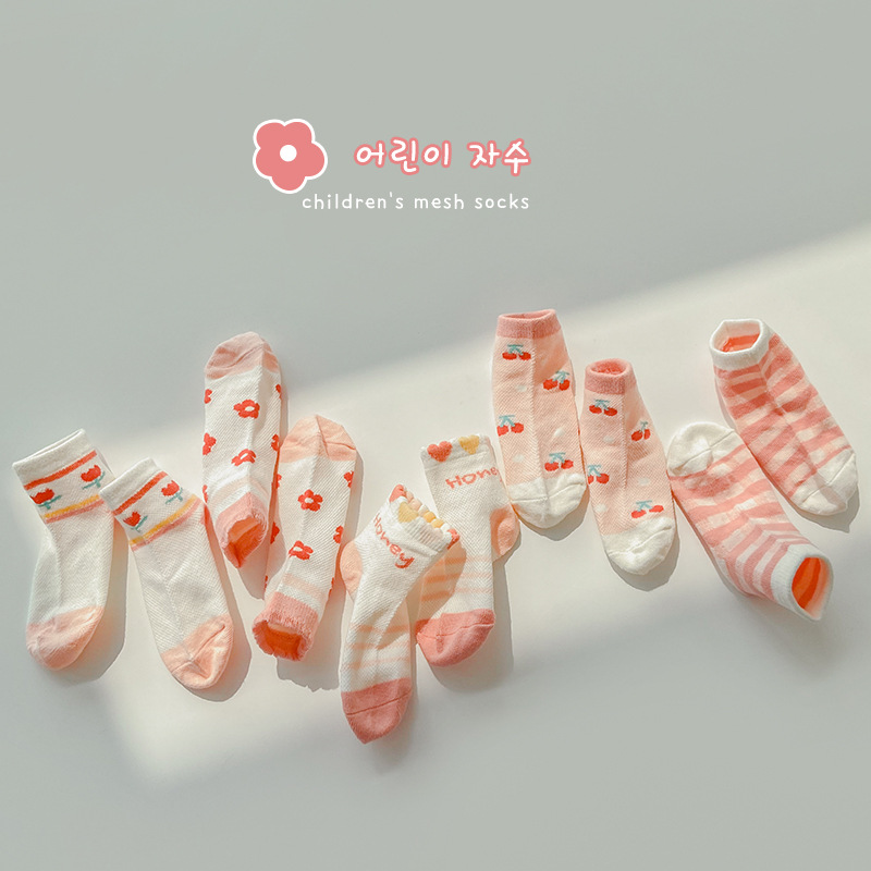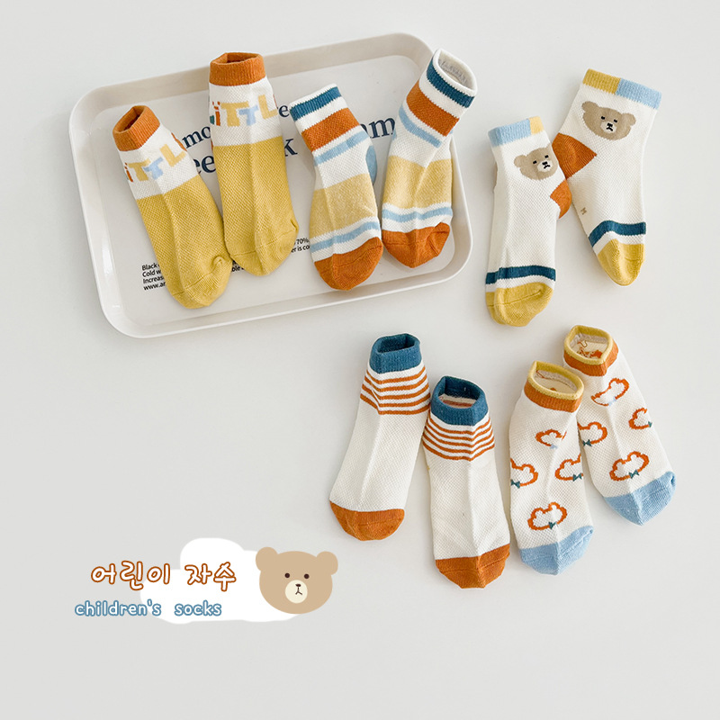어린이 양말 도매 제조 업체 봄과 여름 편지 곰 아기 메쉬 양말 빗질 면화 통기성 얇은 소년 양말스토어 가기
