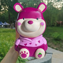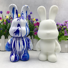 网红流体兔子暴力熊存钱罐手工diy彩绘酷酷熊搪胶流体熊白胚批发