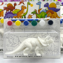 新款diy涂色恐龙儿童手工涂鸦彩绘恐龙模型套装填色上色搪胶玩具