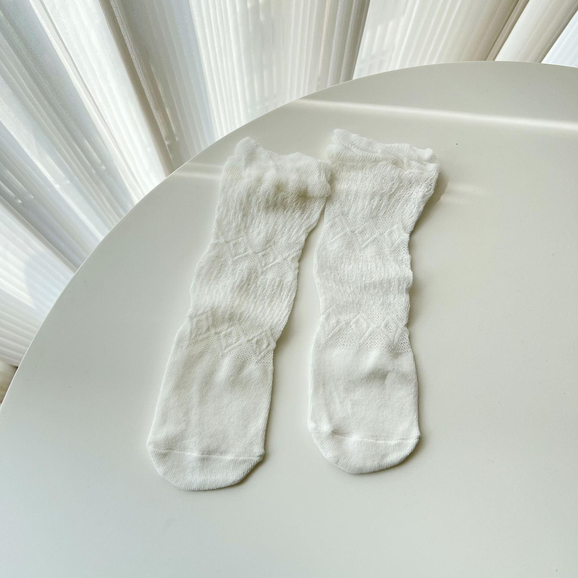 봄과 여름 메쉬 얇은 아기 무릎 안티 모기 양말 신생아 아기 통기성 다리 양말 단색 알몸 양말스토어 가기