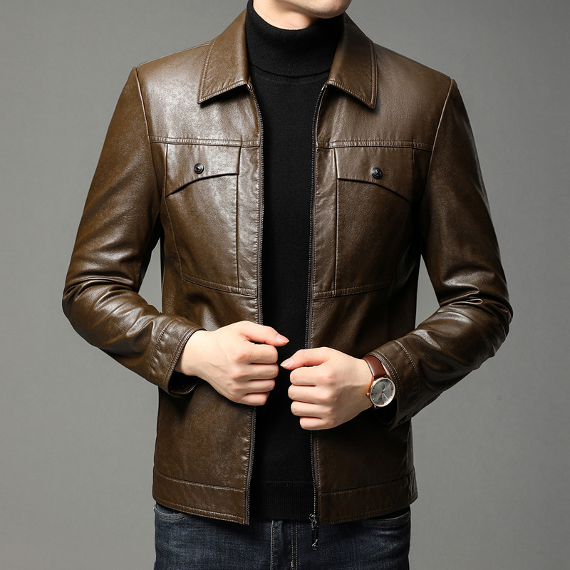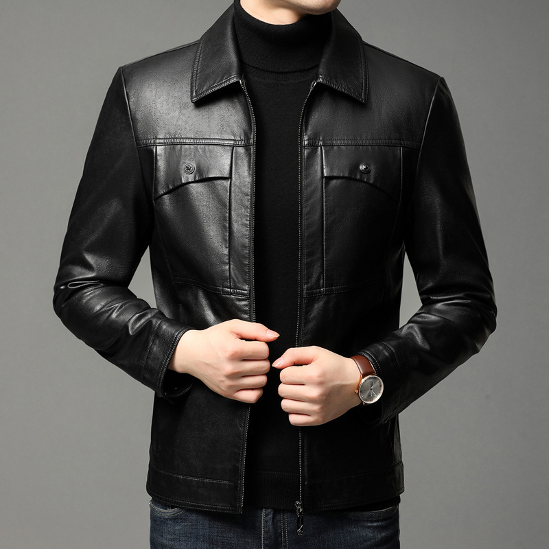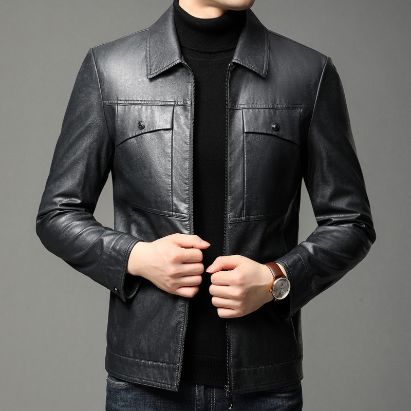 남성 가죽 재킷 캐주얼 라펠 지퍼 패션 재킷 남성 가죽 재킷 한국 스타일 중년 및 청년용 루즈핏 재킷