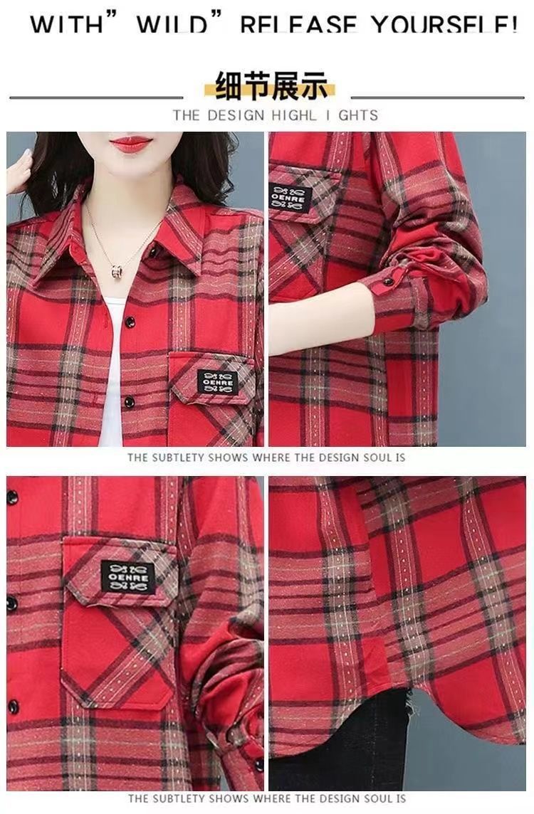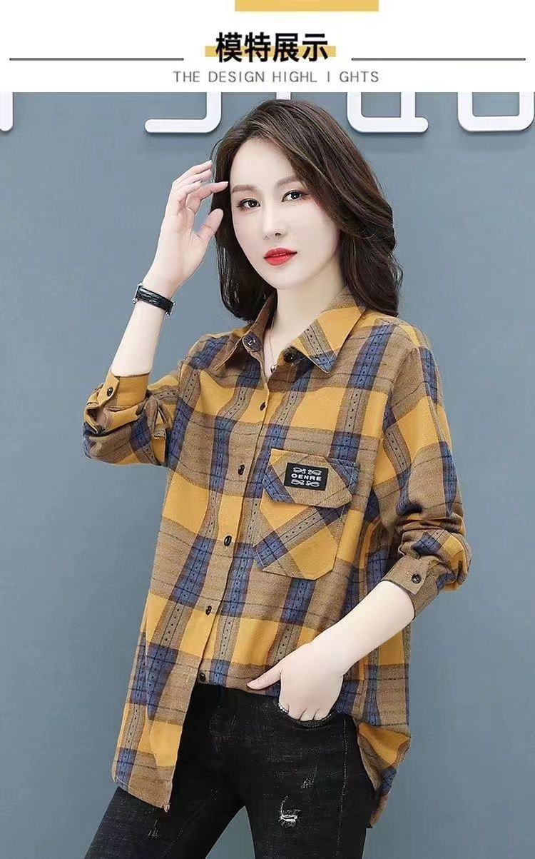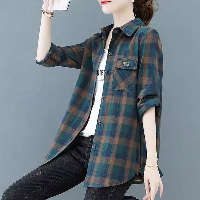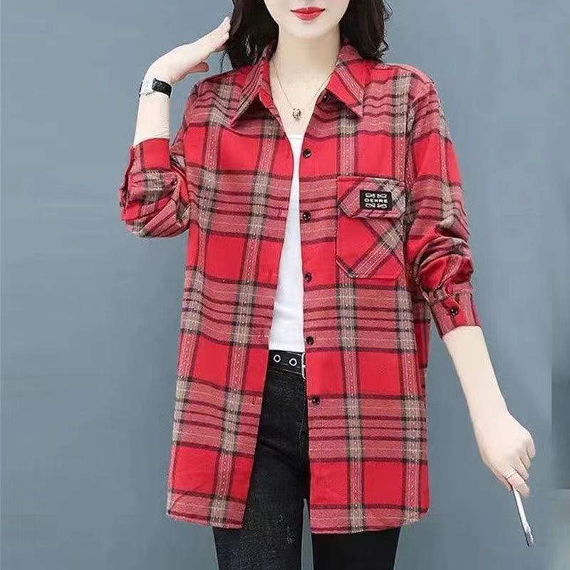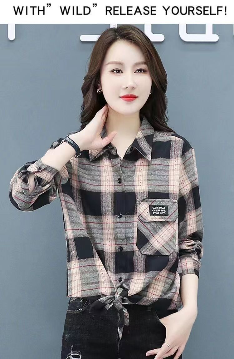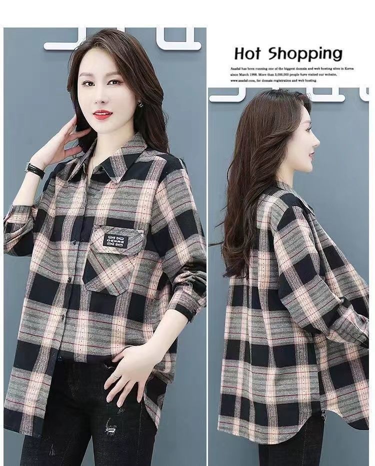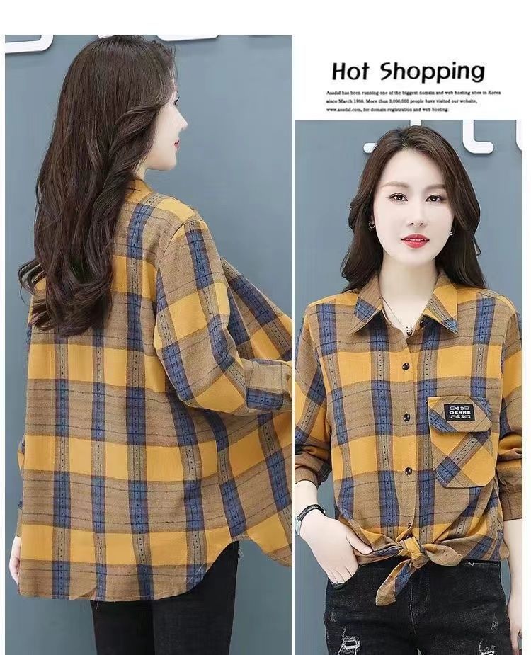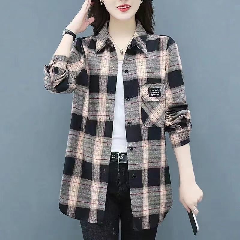2022 봄과 가을 새로운 루즈한 슬림핏 체크 셔츠 여성용 외부 웨스턴 스타일 연령 감소 셔츠 봄 여성용 모든 매치 탑스토어 가기