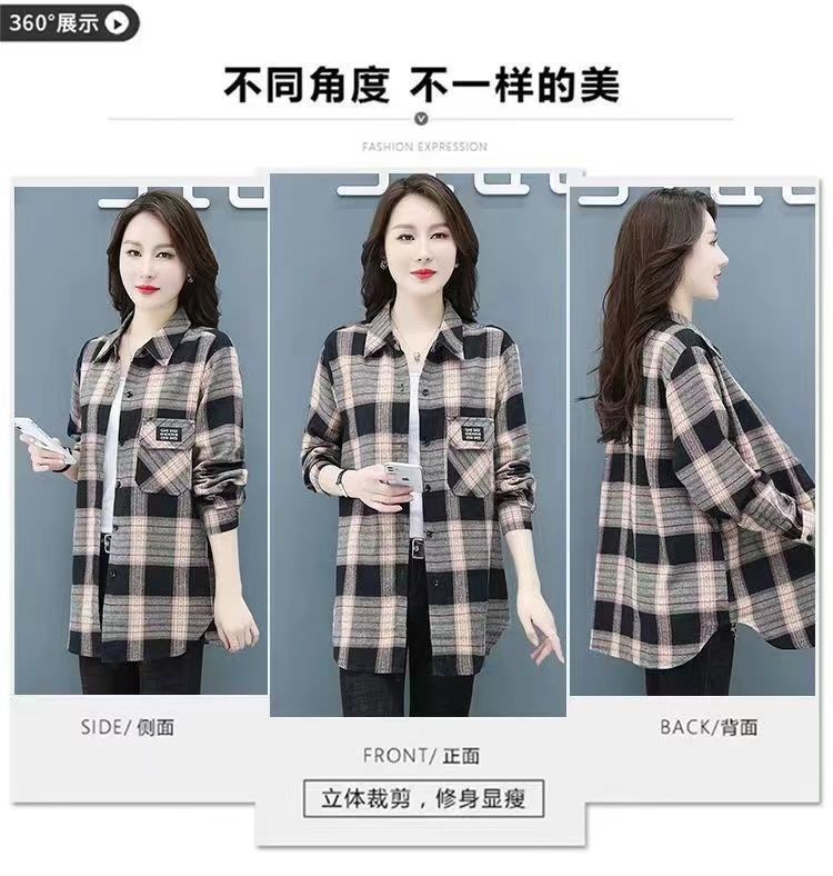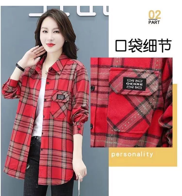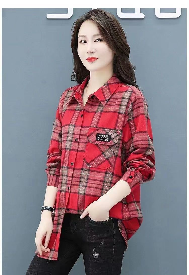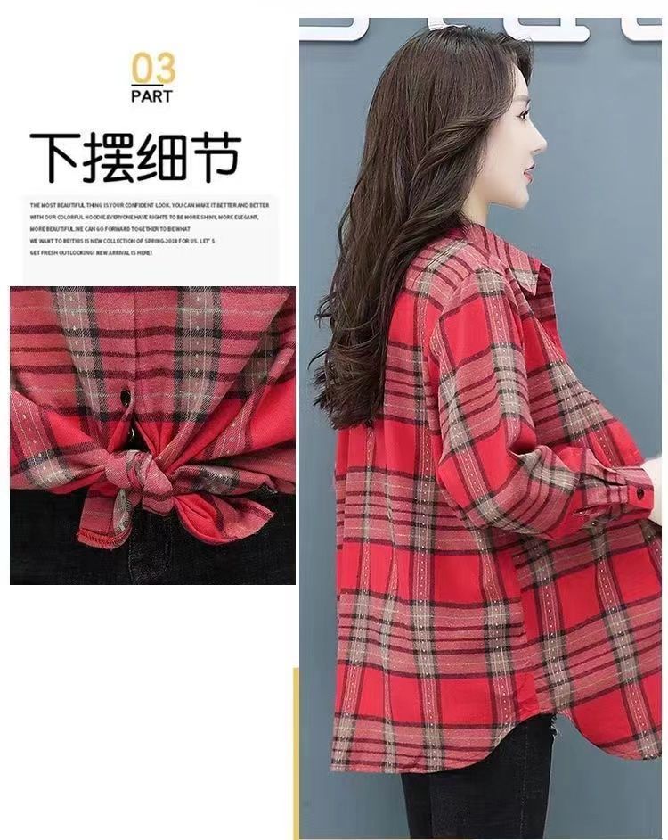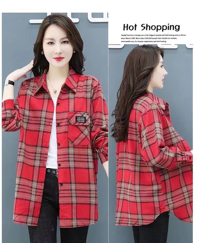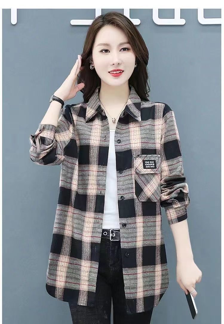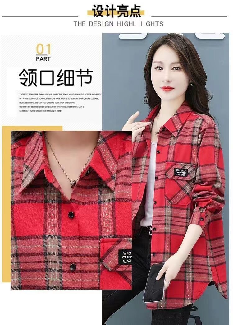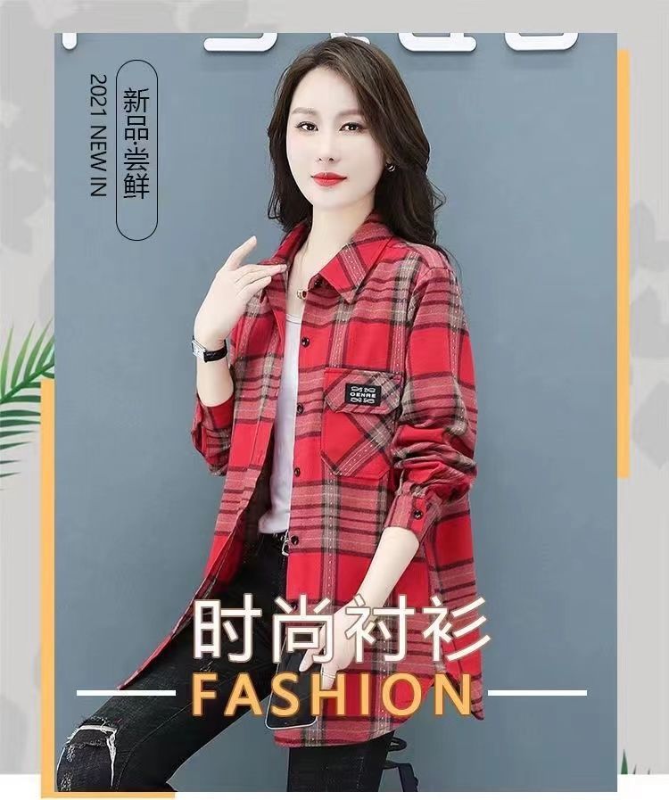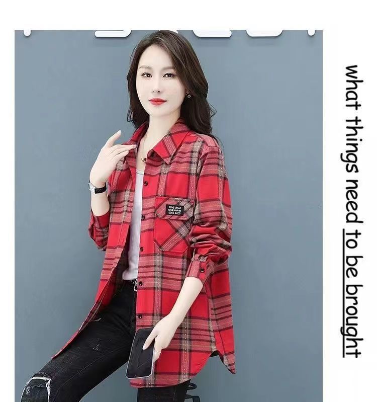2022 봄과 가을 새로운 루즈한 슬림핏 체크 셔츠 여성용 외부 웨스턴 스타일 연령 감소 셔츠 봄 여성용 모든 매치 탑스토어 가기