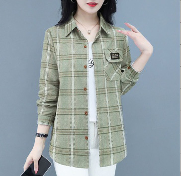 2022 봄과 가을 새로운 루즈한 슬림핏 체크 셔츠 여성용 외부 웨스턴 스타일 연령 감소 셔츠 봄 여성용 모든 매치 탑