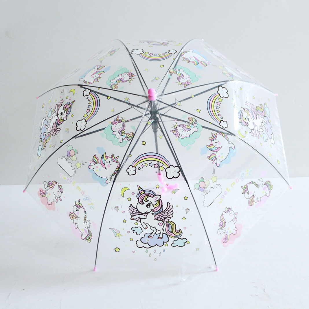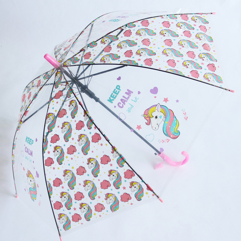제조업체 도매 어린이 우산 19inch 투명 우산 학생용 팬더 우산 직선형 자동 POE 우산 맞춤형 패턴 로고 가능