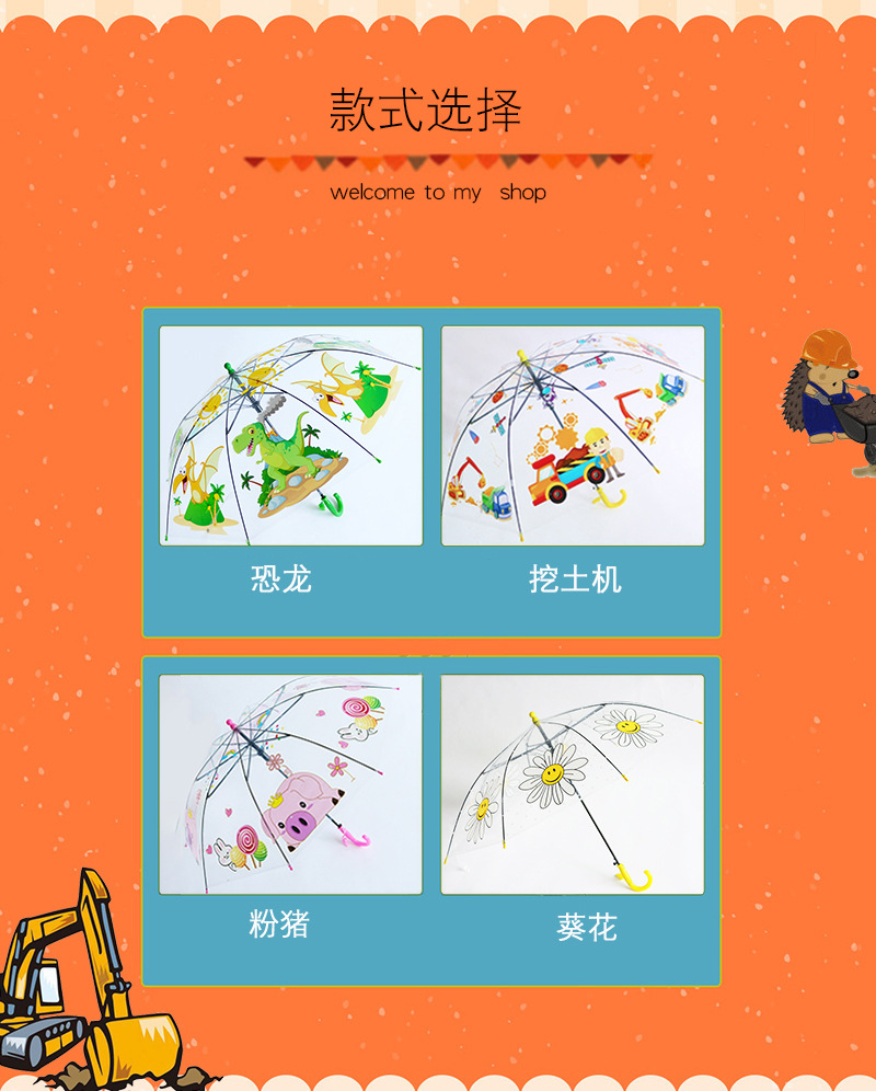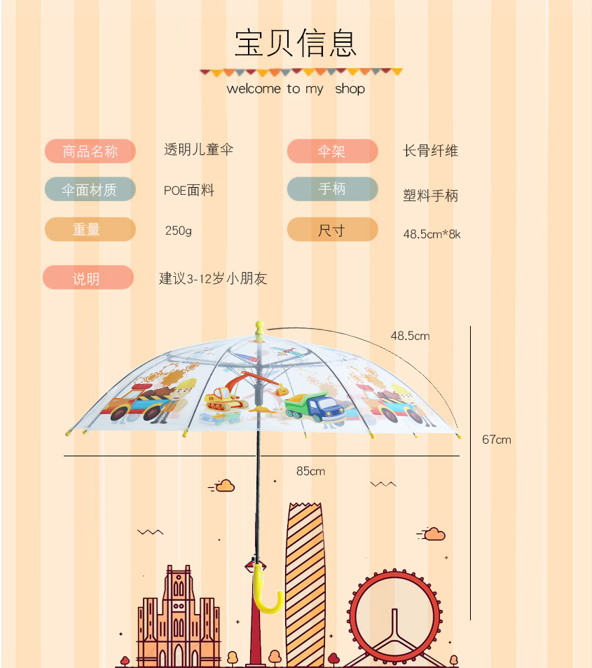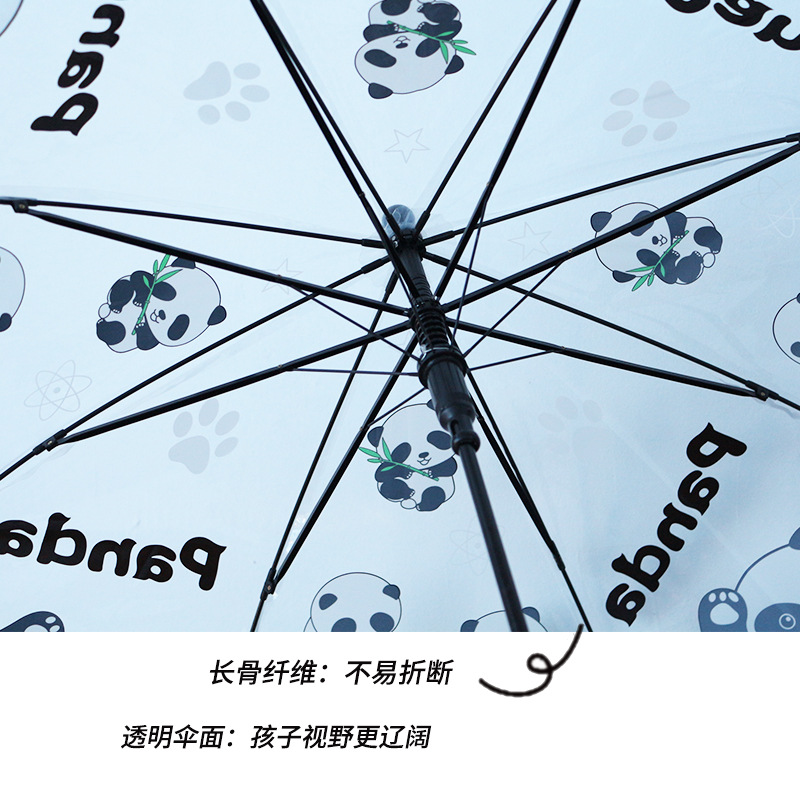 제조업체 도매 어린이 우산 19inch 투명 우산 학생용 팬더 우산 직선형 자동 POE 우산 맞춤형 패턴 로고 가능스토어 가기