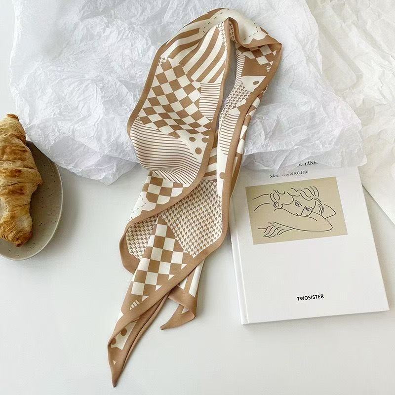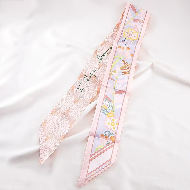 새로운 긴 작은 실크 스카프 헤어 밴드 여성용 양면 우아한 넥타이 가방 리본 작은 스카프 손 선물 리본 스카프스토어 가기