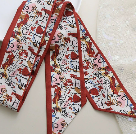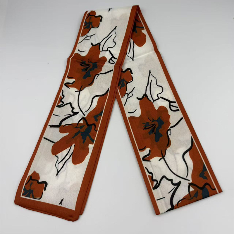 새로운 긴 작은 실크 스카프 헤어 밴드 여성용 양면 우아한 넥타이 가방 리본 작은 스카프 손 선물 리본 스카프