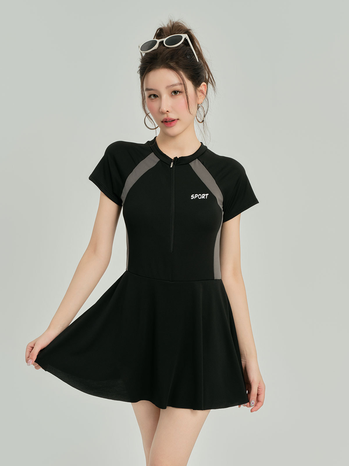 수영복 여성의 여름 2024 새로운 긴팔 선 스크린 대형 스커트 육체 커버 보수적 인 통통녀 배꼽 슬림 수영복스토어 가기