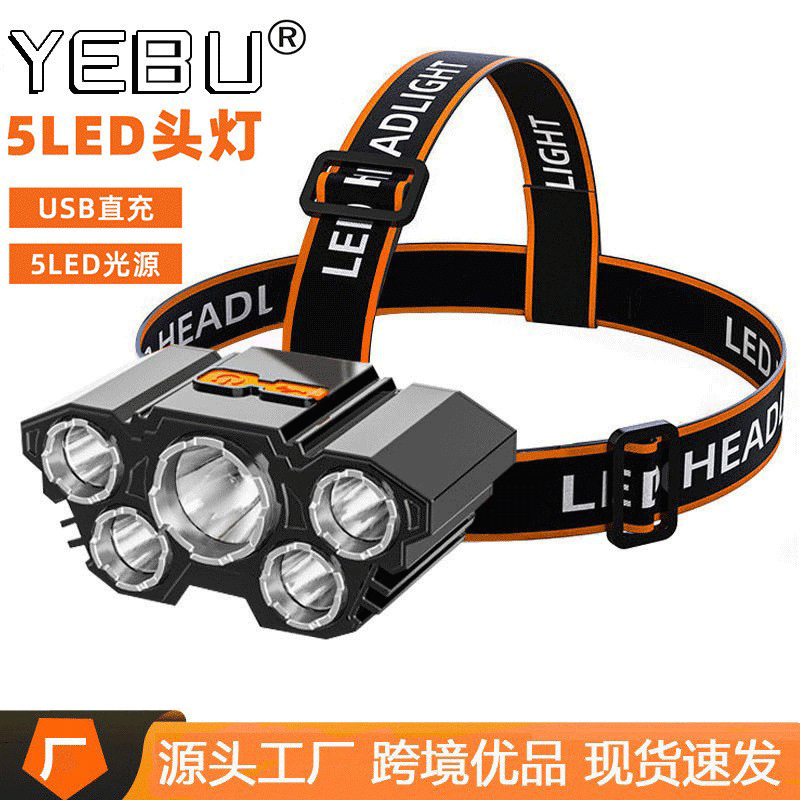 크로스보더 LED 5헤드 라이트 강력한 헤드램프 야외용 헤드램프 작업용 광산 램프 초장시간 배터리 낚시용 소형 헤드램프스토어 가기