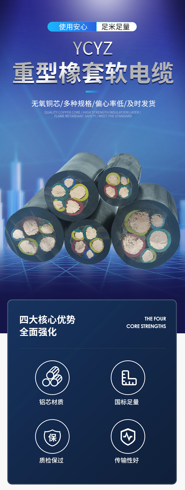 YCYZ 헤비 듀티 고무 피복 케이블 고무 방수 케이블 YCW 2/3/4/5 코어 저전압 전원 케이블