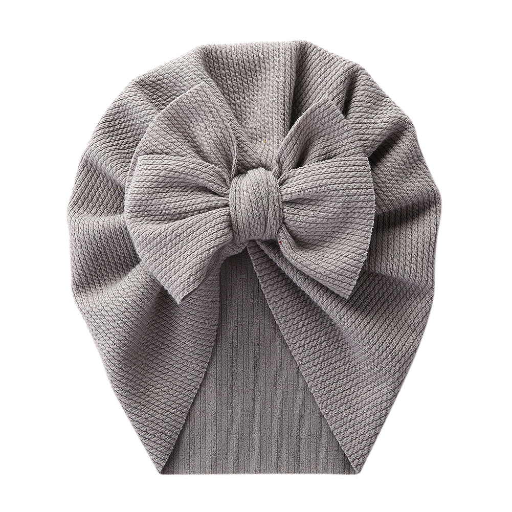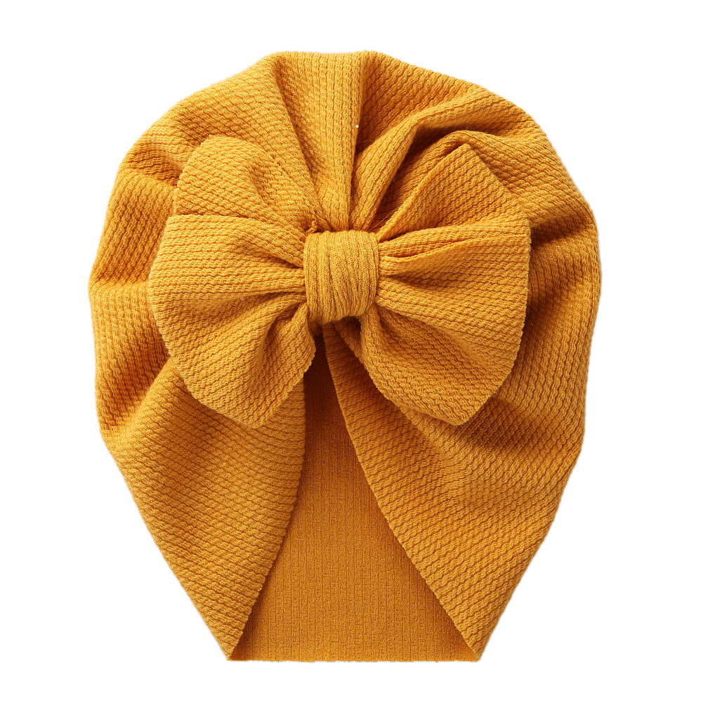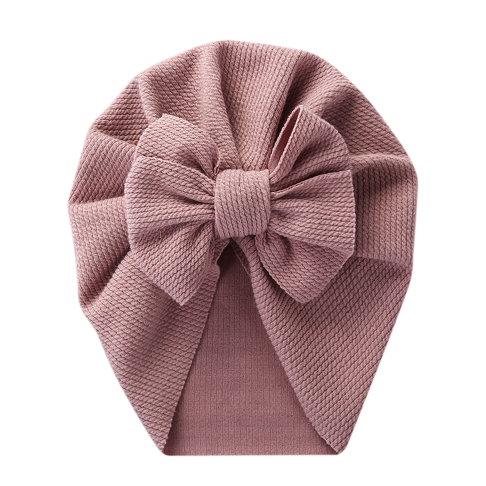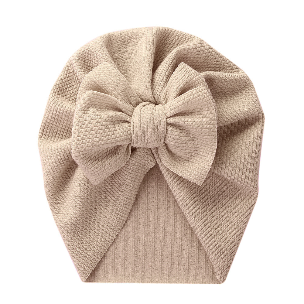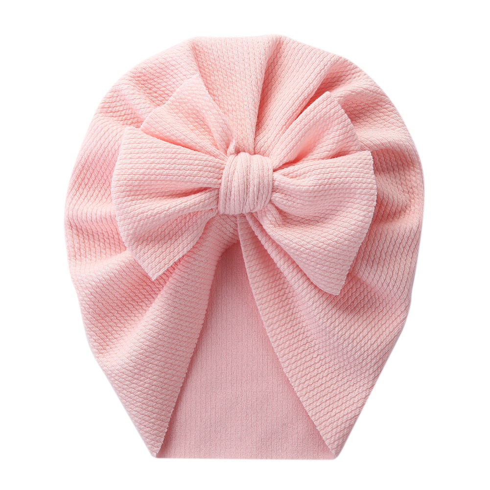 跨境新款纯色儿童套头帽双蝴蝶结宝宝印度帽子坑条棉柔软婴儿胎帽超值价:¥4.7