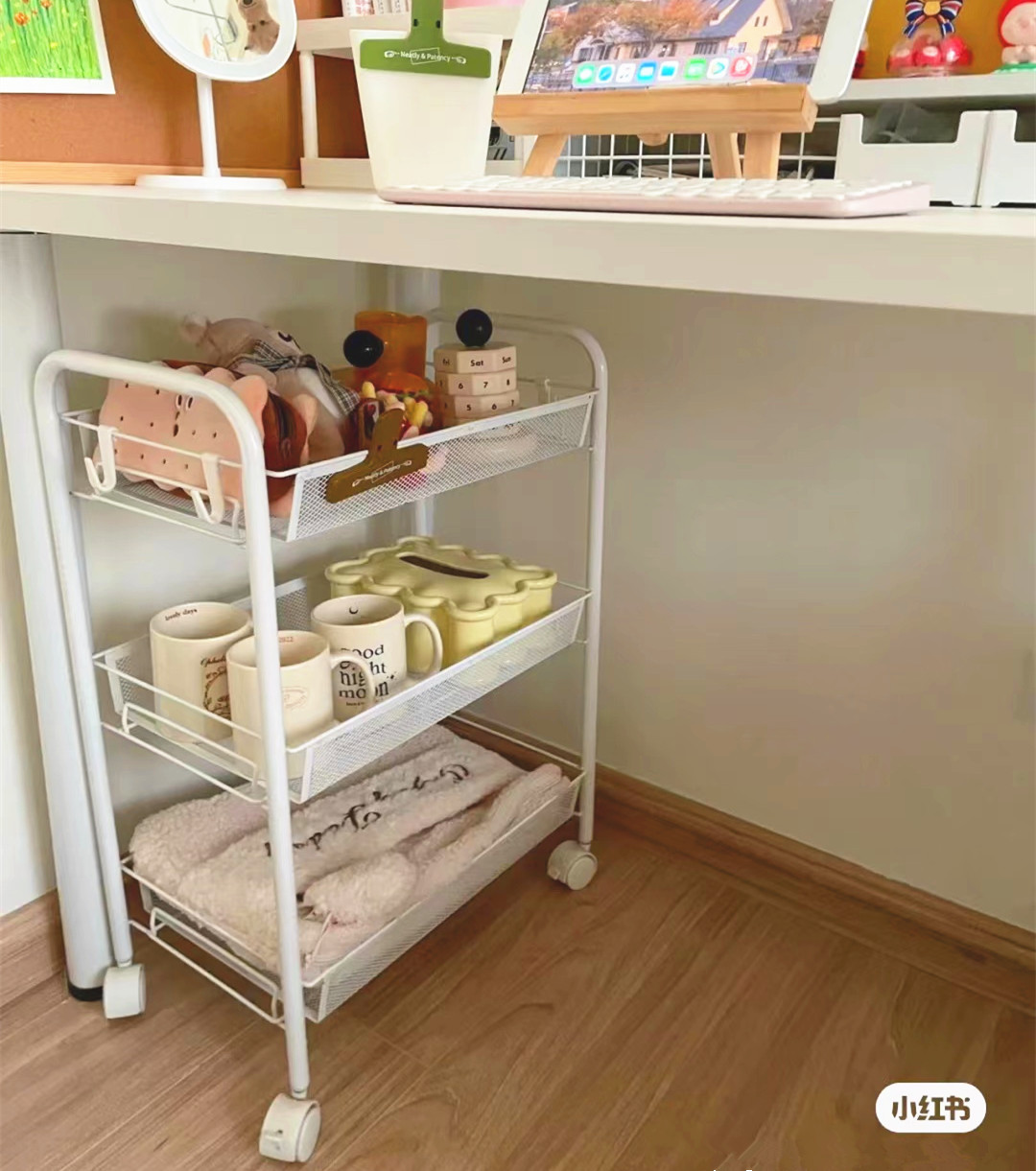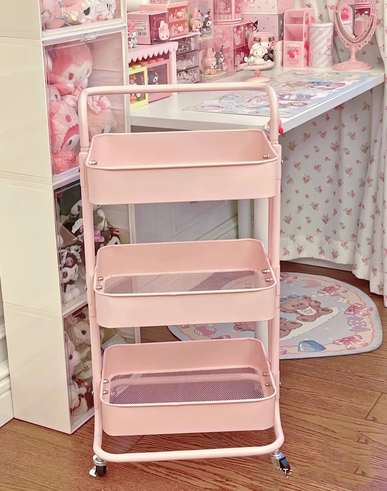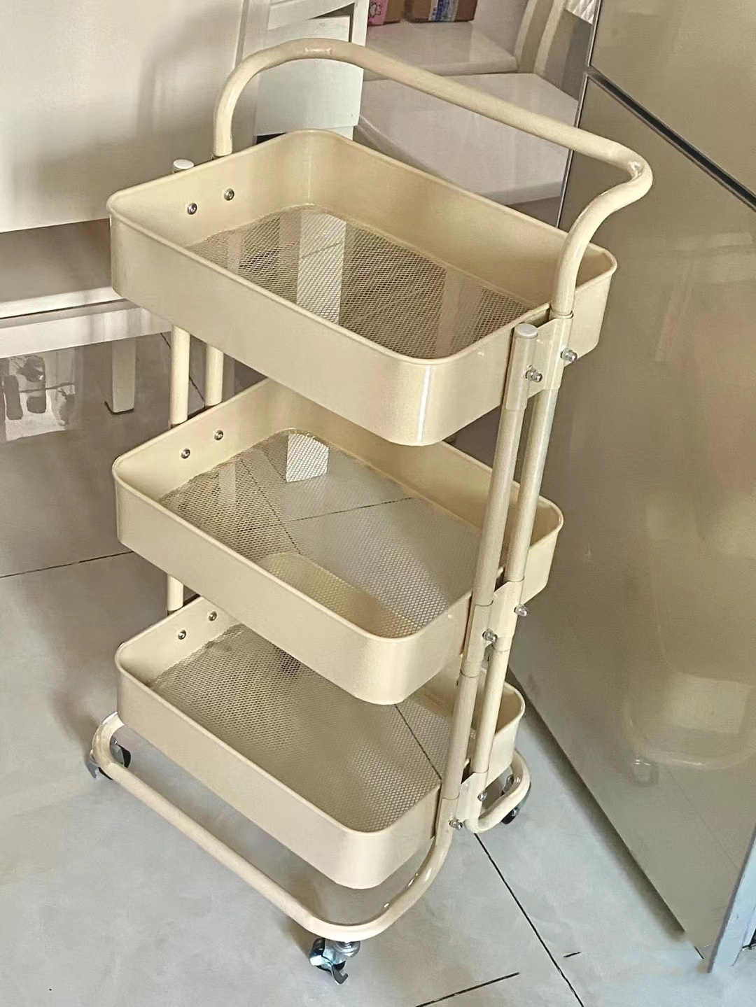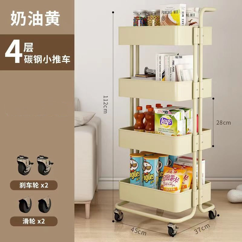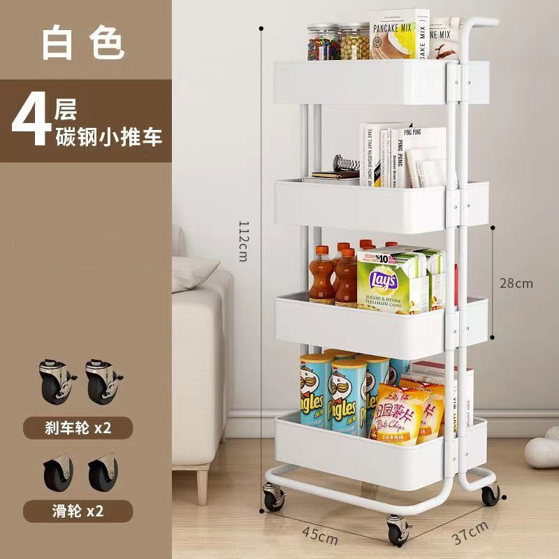 SKU-10-4层碳钢手推车白色【滑轮】_2挂盒
