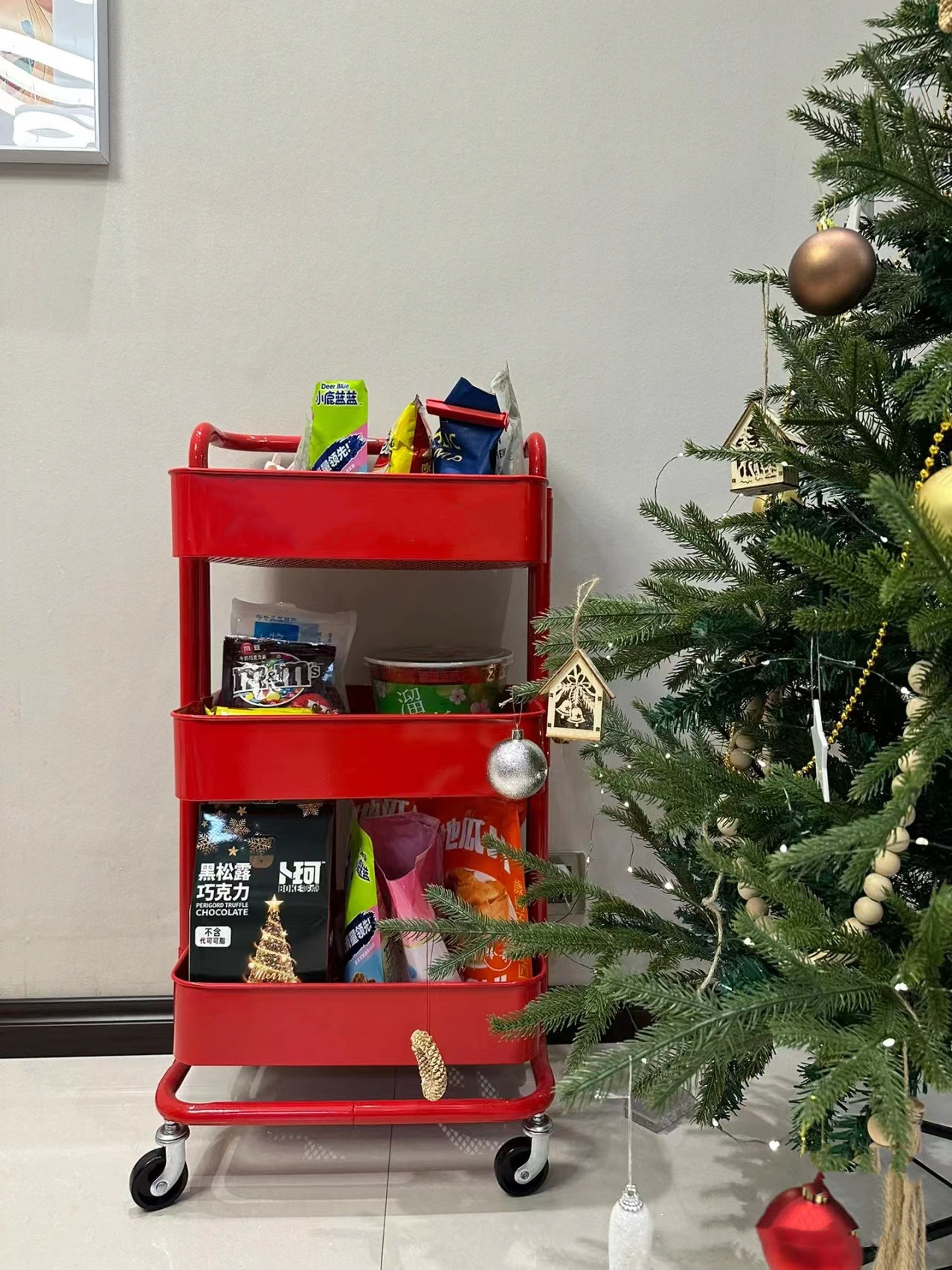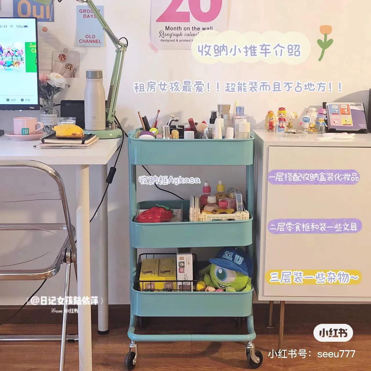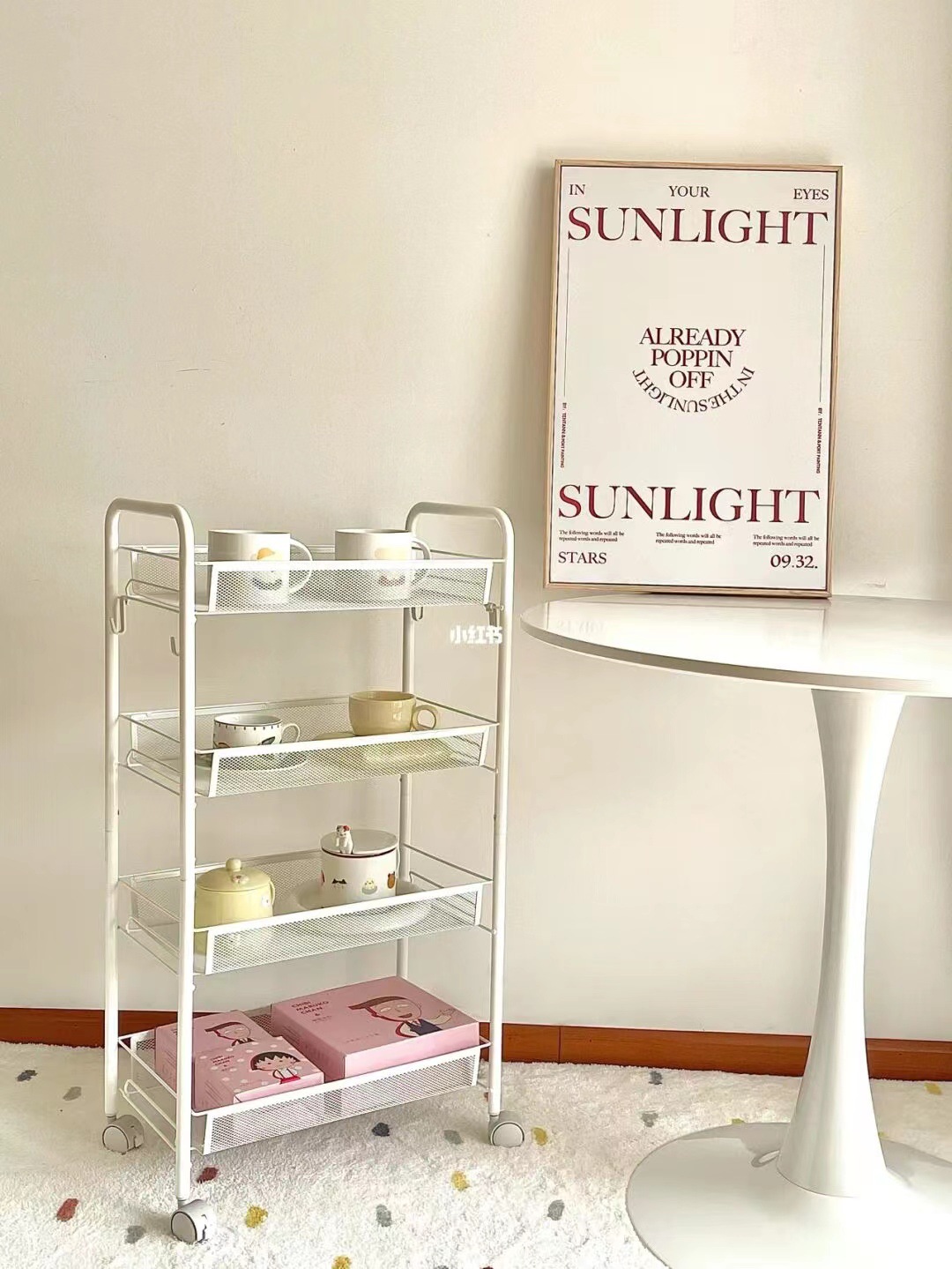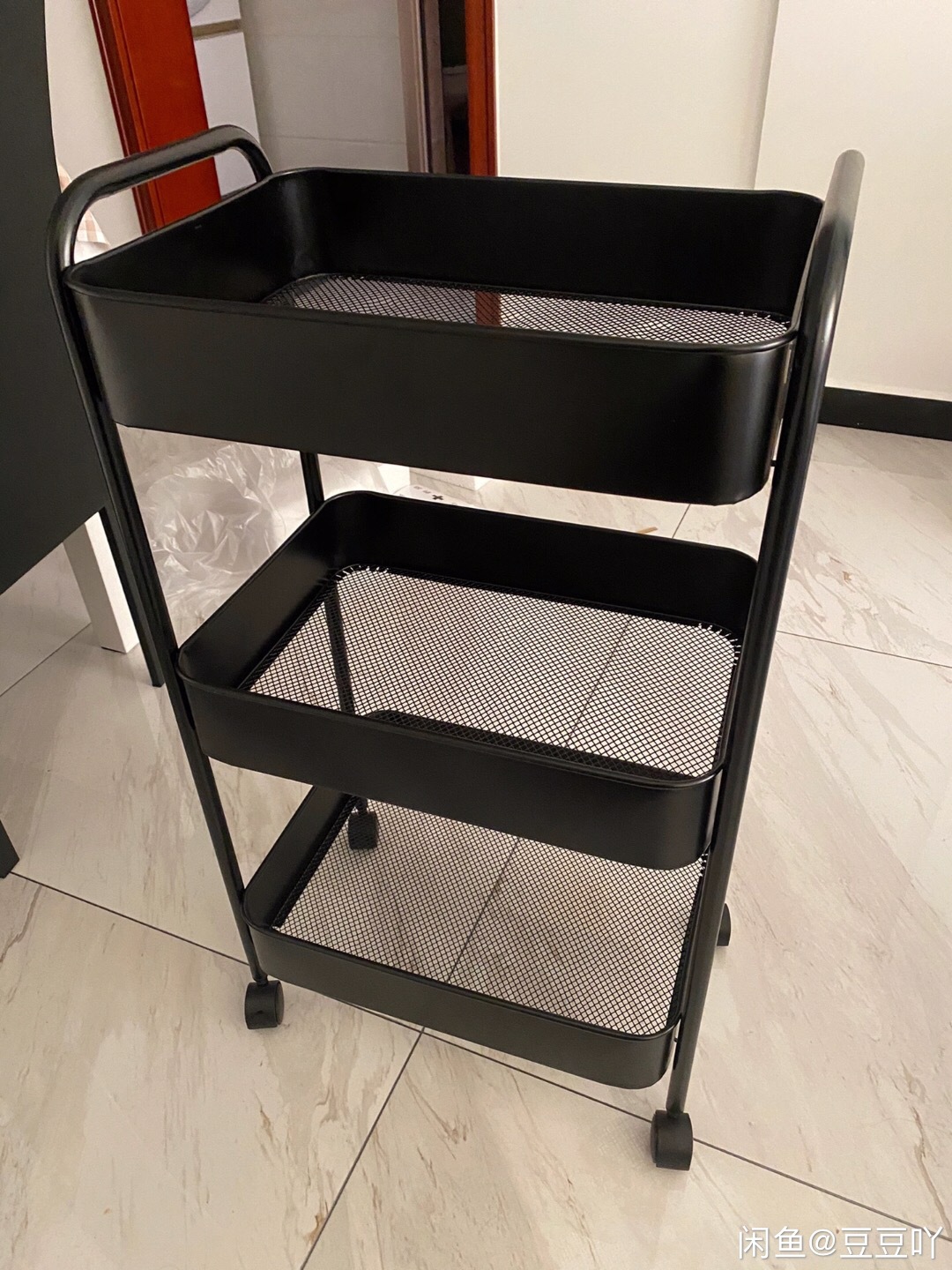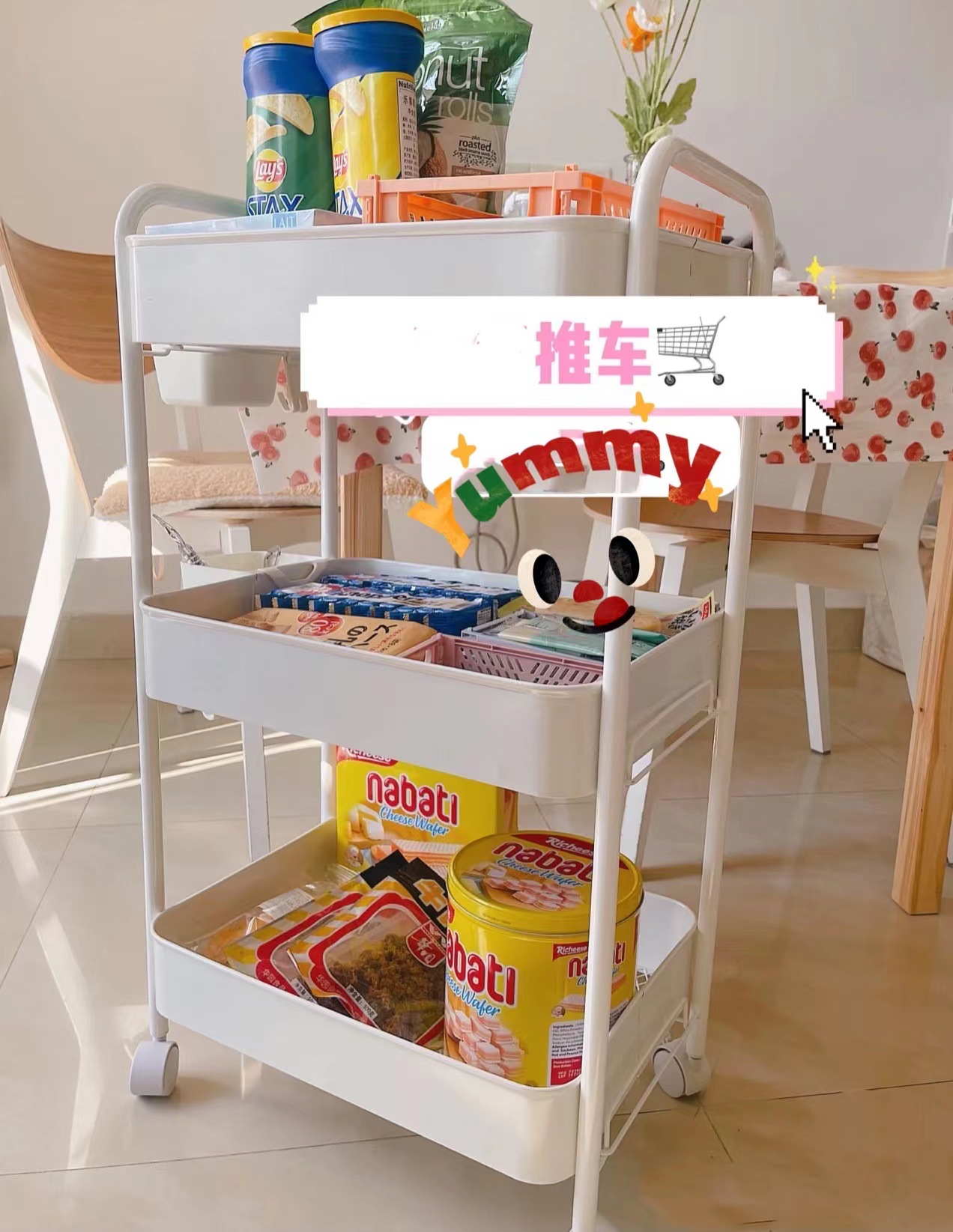 SKU-10-4层碳钢手推车白色【滑轮】_2挂盒