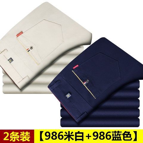 2023 여름 롱 팬츠 남성 캐주얼 바지 스트레이트 핏 루즈한 비즈니스 바지 슬림핏 오버롤 퓨어 코튼 봄과 가을스토어 가기