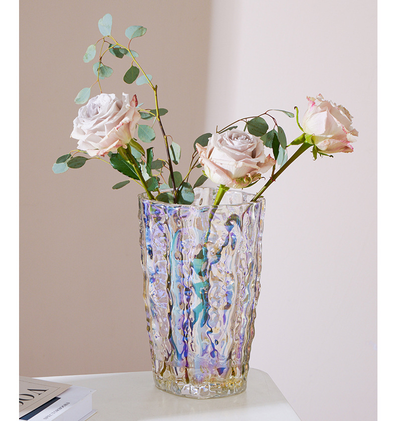 핀란드 매우 냉동 빙하 유리 꽃병 투명 물 제기 장미 백합 꽃 거실 꽃 장식품 북유럽 스타일