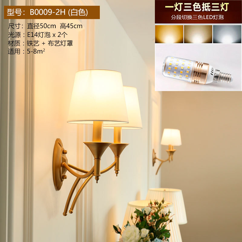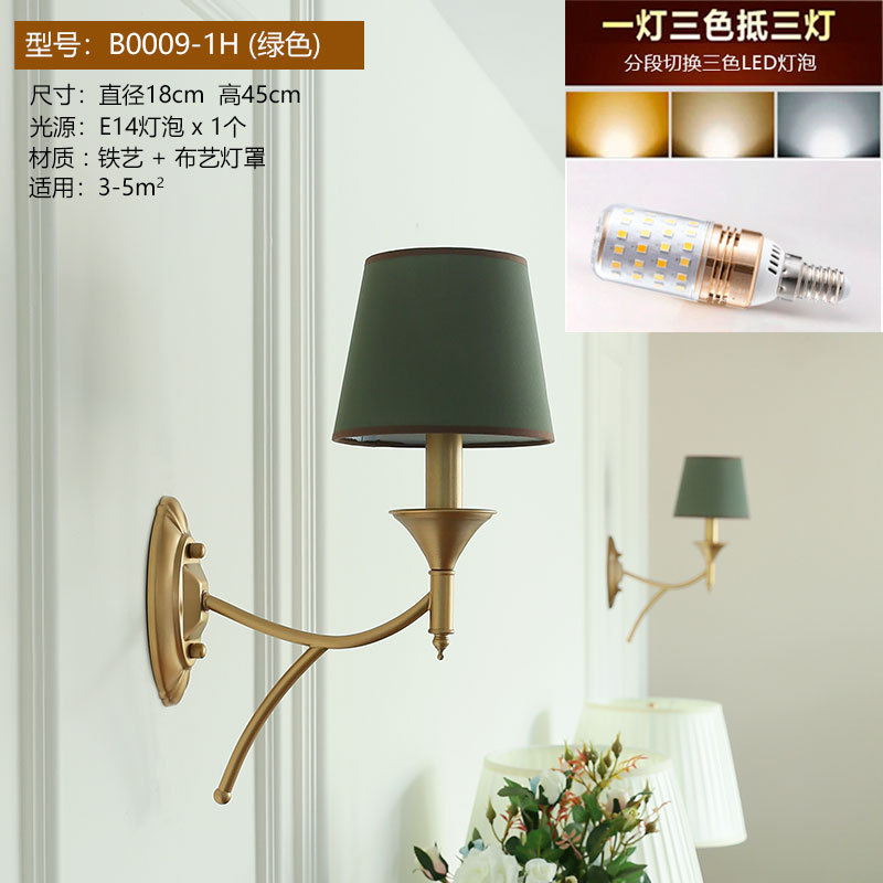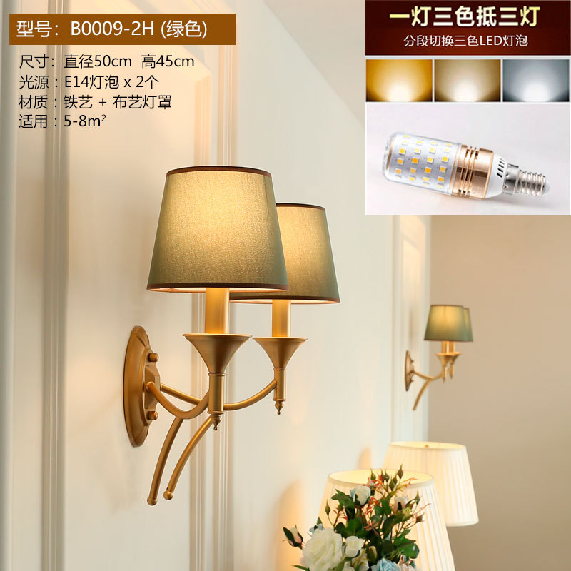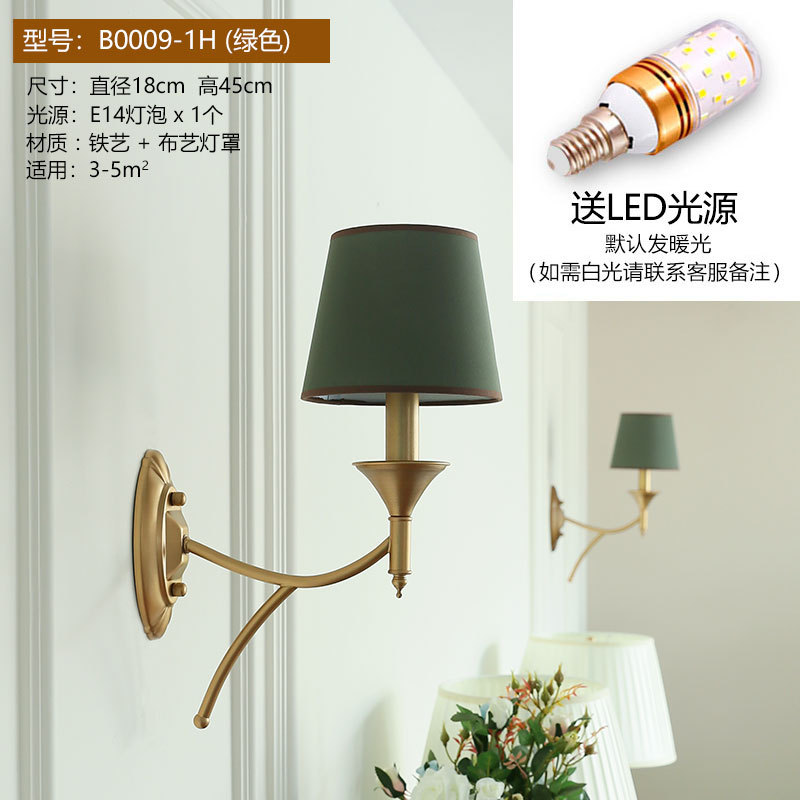 새로운 미국 스타일 벽 램프 침실 침대 옆 벽 램프 거실 싱글 헤드 더블 헤드 간단한 국가 철 계단 통로 램프