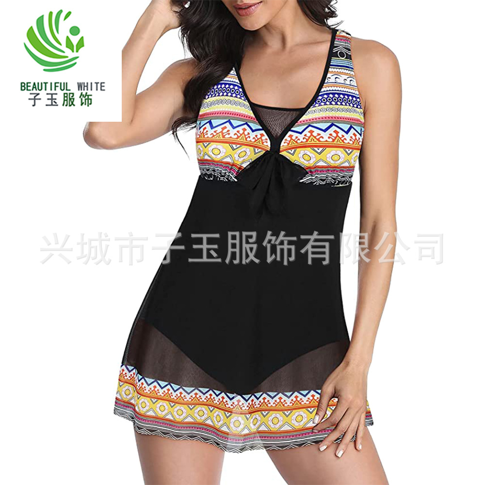 아마존 새로운 유럽과 미국의 대형 원피스 수영복 숙녀 섹시한 메쉬 인쇄 보수적 인 수영복 명소 도매스토어 가기