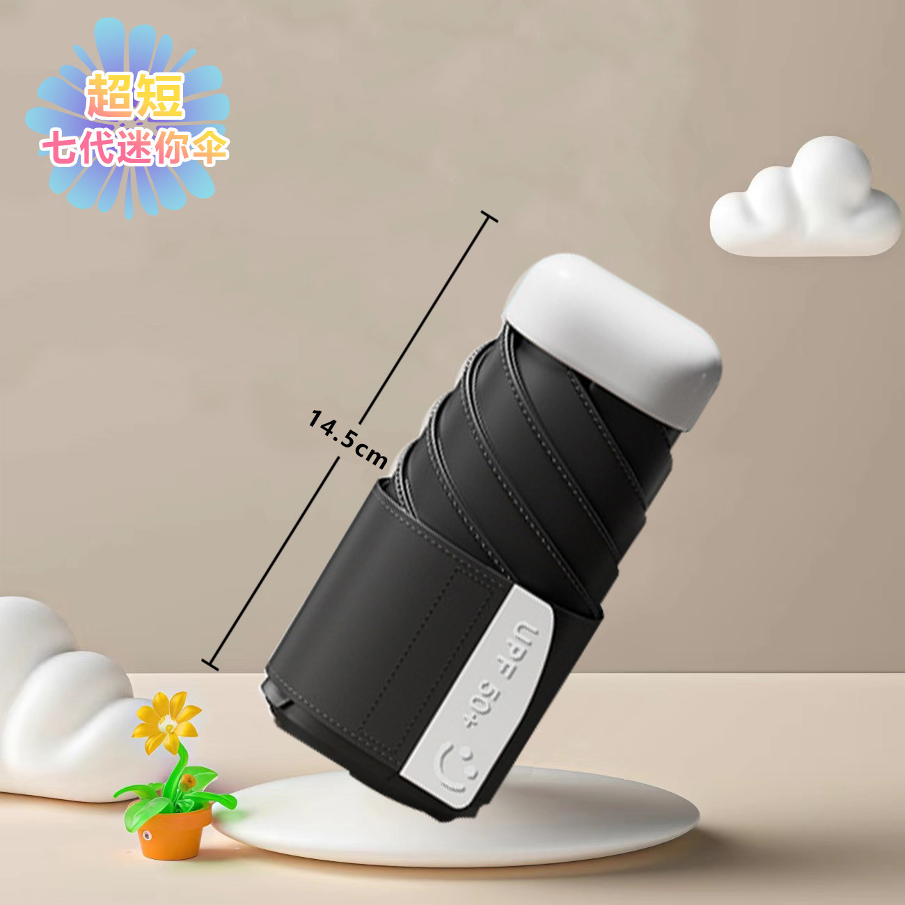 슈퍼 소형 6 배 차양 방지 우산 블랙 껌 이중 사용 우산 포켓 태양 우산 미니 캡슐 자외선 차단제 우산 여성