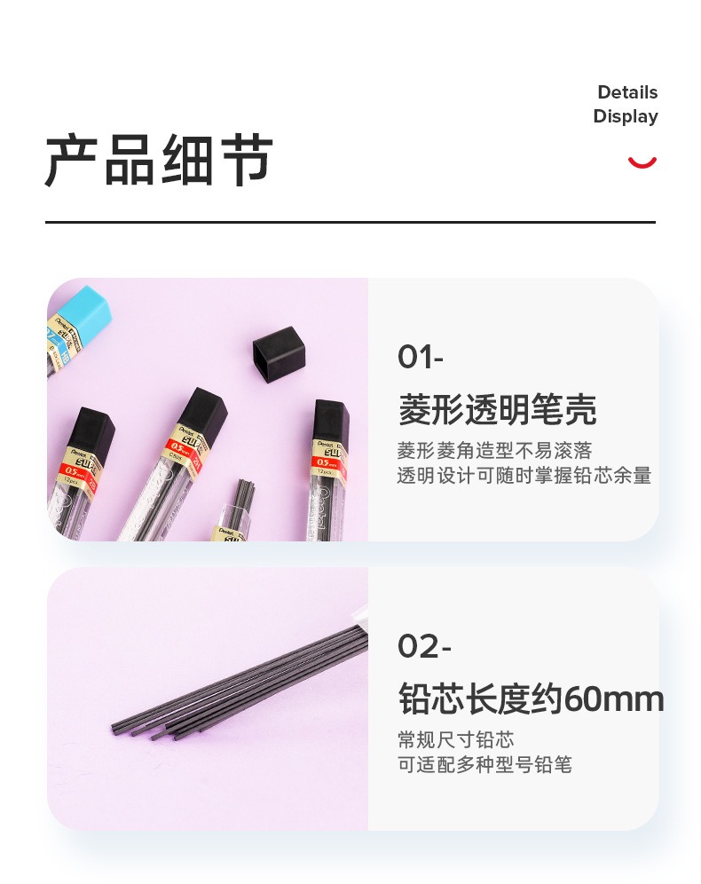 일본 펜텔 자동연필 리필 0.5/0.7 푸시버튼 연필심은 깨지기 쉽지 않습니다.스토어 가기
