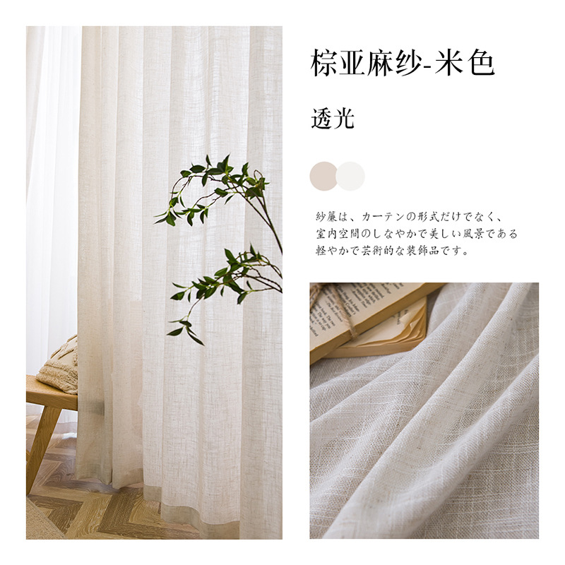 새로운 린넨 커튼 다크 브라운 조용한 바람 거실 발코니 베이 창 커튼 스크린 화이트 거즈 커튼 완제품 도매