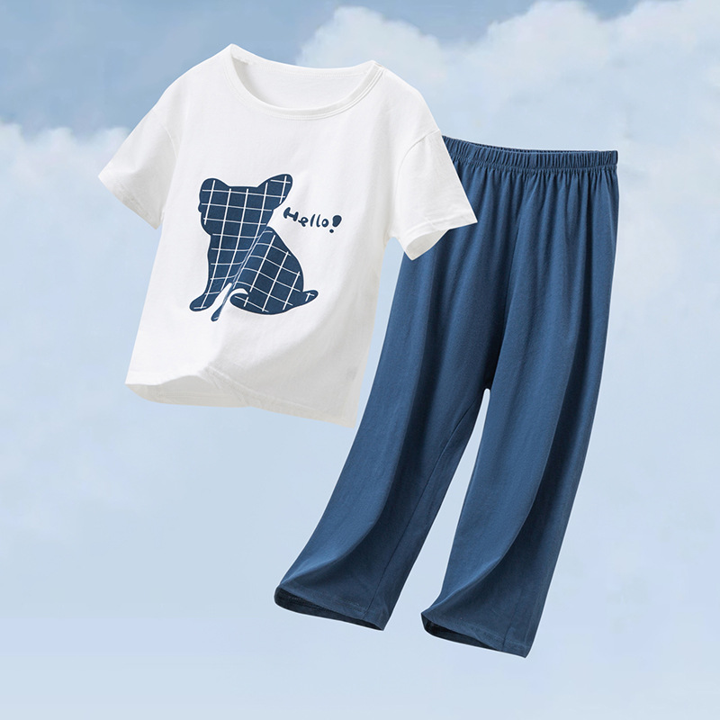 어린이 순면 홈 의류 세트 중대형 어린이 반팔 바지 아기 만화 잠옷 소년 소녀 에어컨 옷스토어 가기