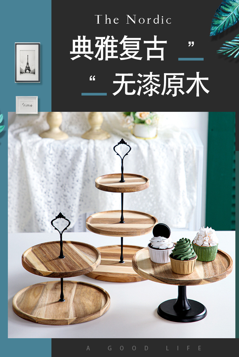 크로스보더 원목 디저트 테이블 스낵 디저트 원목 케이크 스탠드 창의적인 케이크 스낵 트레이 건과일 과일 접시스토어 가기