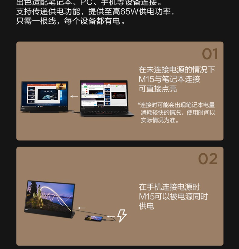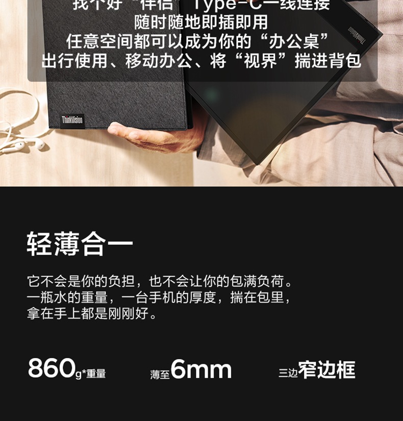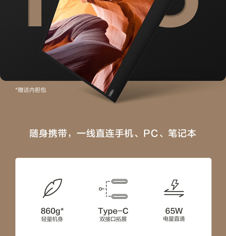 Lenovo (ThinkVision) M15 15.6 인치 듀얼 TypeC 로우 블루 올인원 휴대용 디스플레이